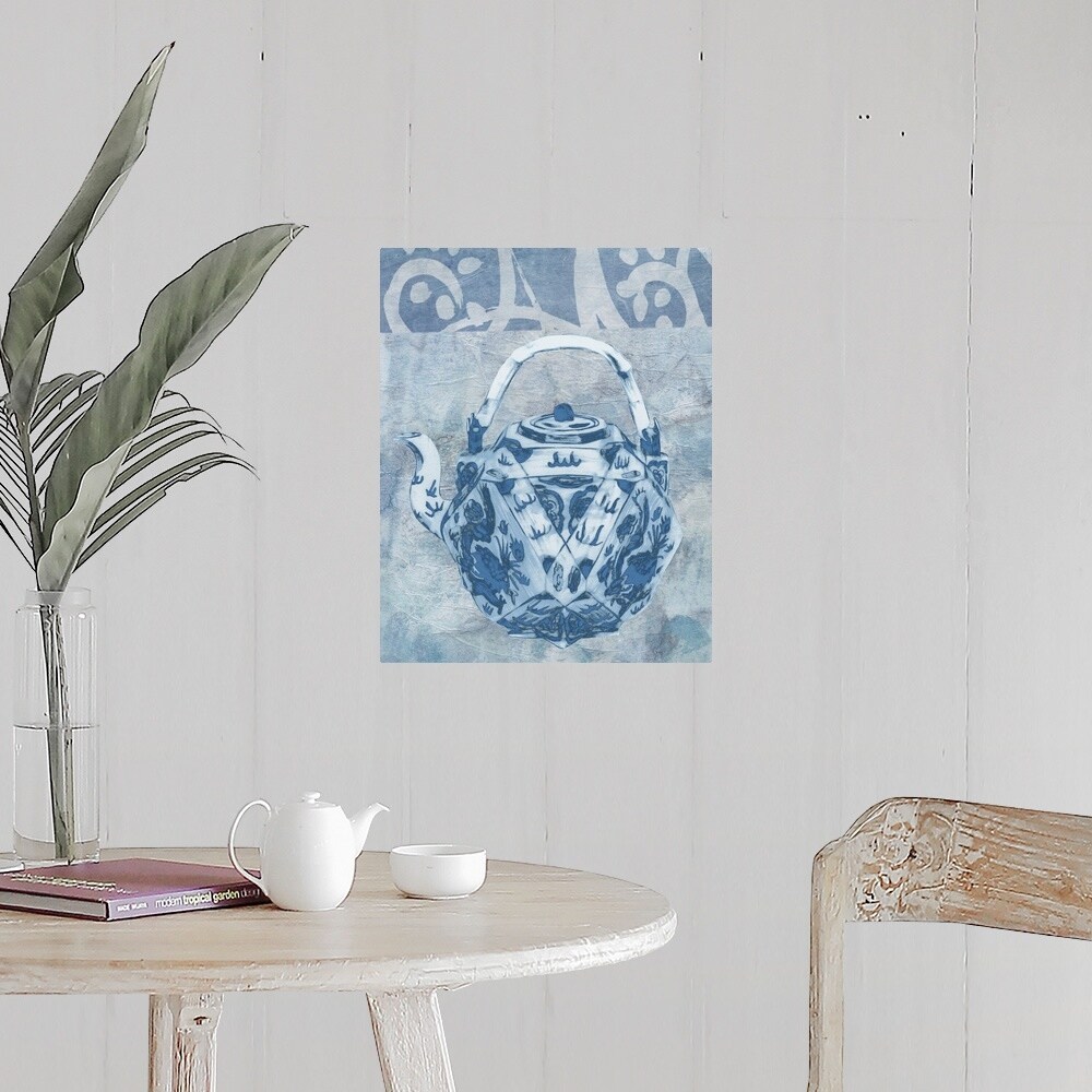 iCanvas "Teapot, Cup and Flowers, Green and Blue" by Fab Funky Canvas Print