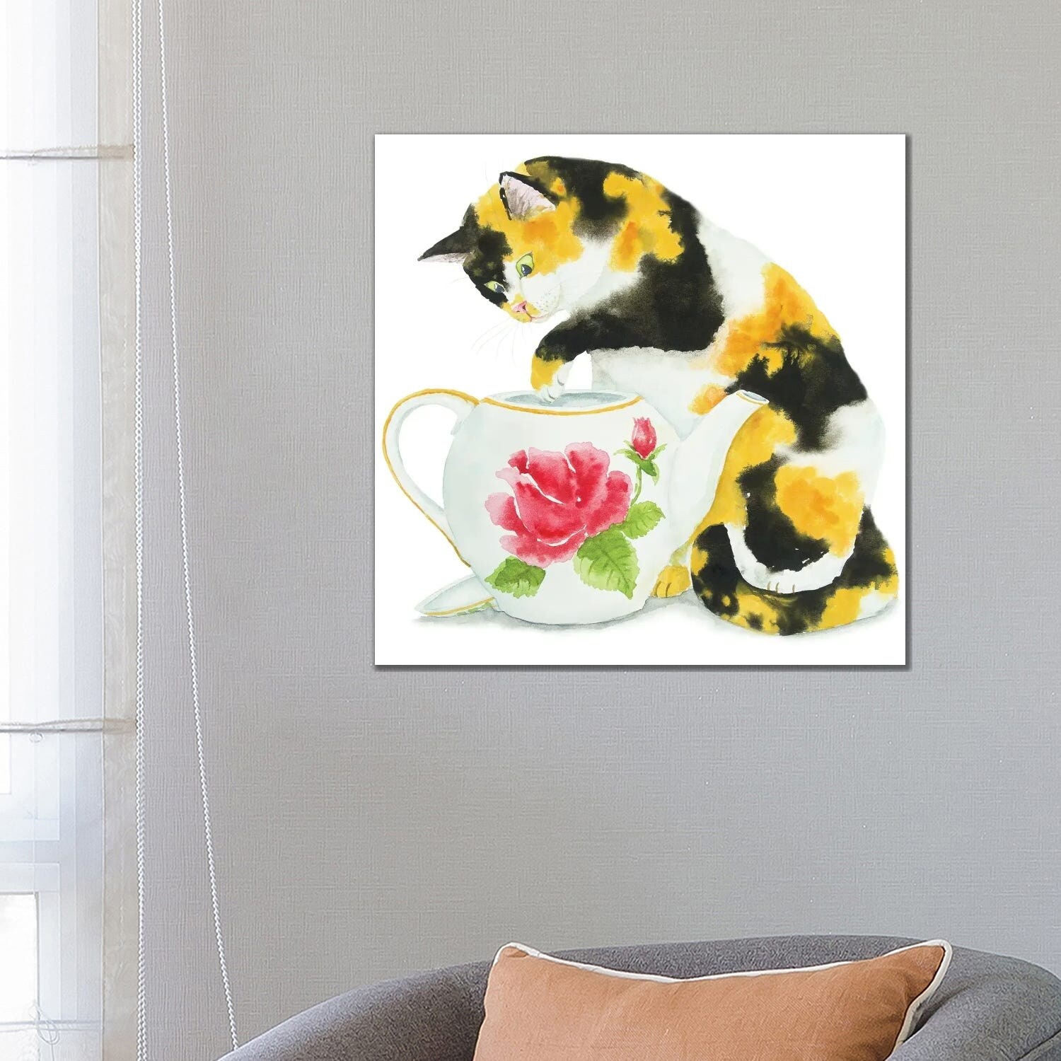 iCanvas "Calico Cat And Teapot" by Alexey Dmitrievich Shmyrov Canvas Print