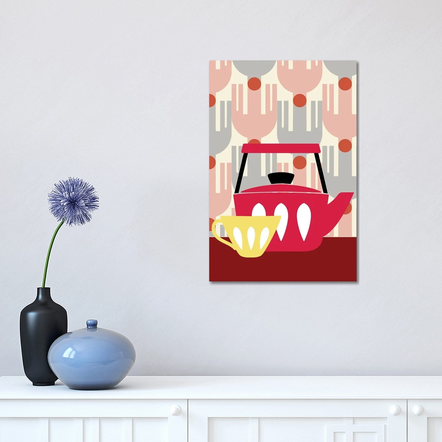 iCanvas "Teapot, Cup and Flowers, Orange and Blue" by Fab Funky Canvas Print