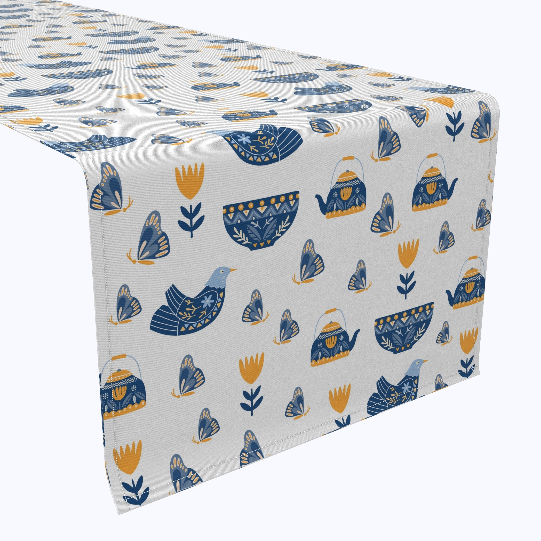 Fabric Textile Products, Inc. Table Runner, 100% Cotton, 16x108", Teapots & Butterflies