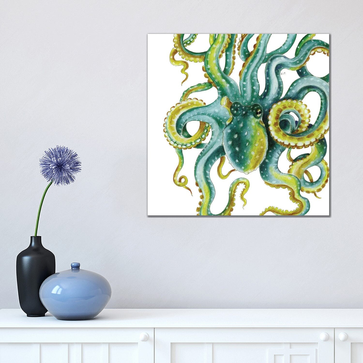 iCanvas "Green Octopus Tentacles Watercolor Art" by Seven Sirens Studios Canvas Print