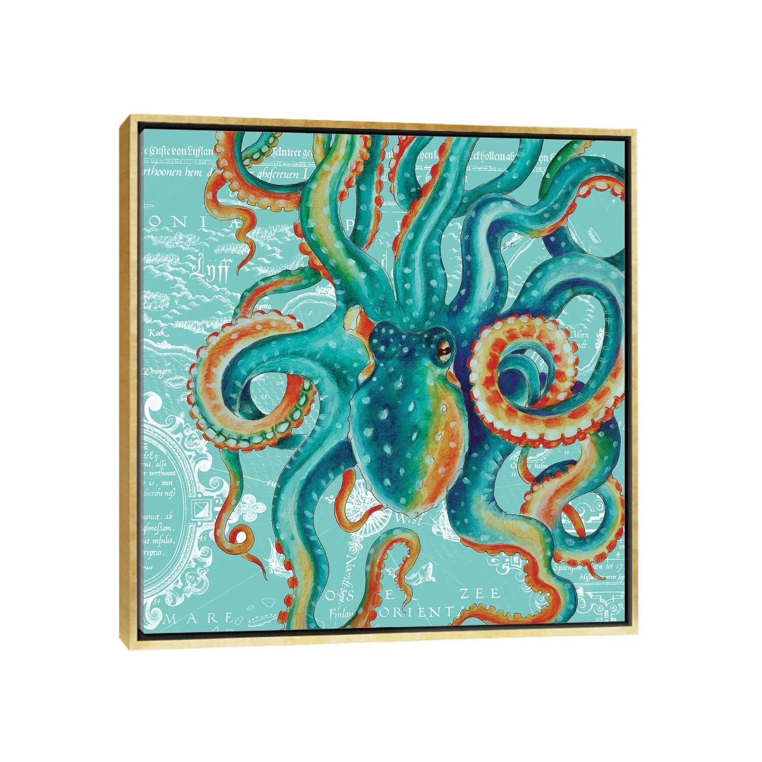 iCanvas "Octopus Teal Tentacles Vintage Map Teal" by Seven Sirens Studios Framed Canvas Print