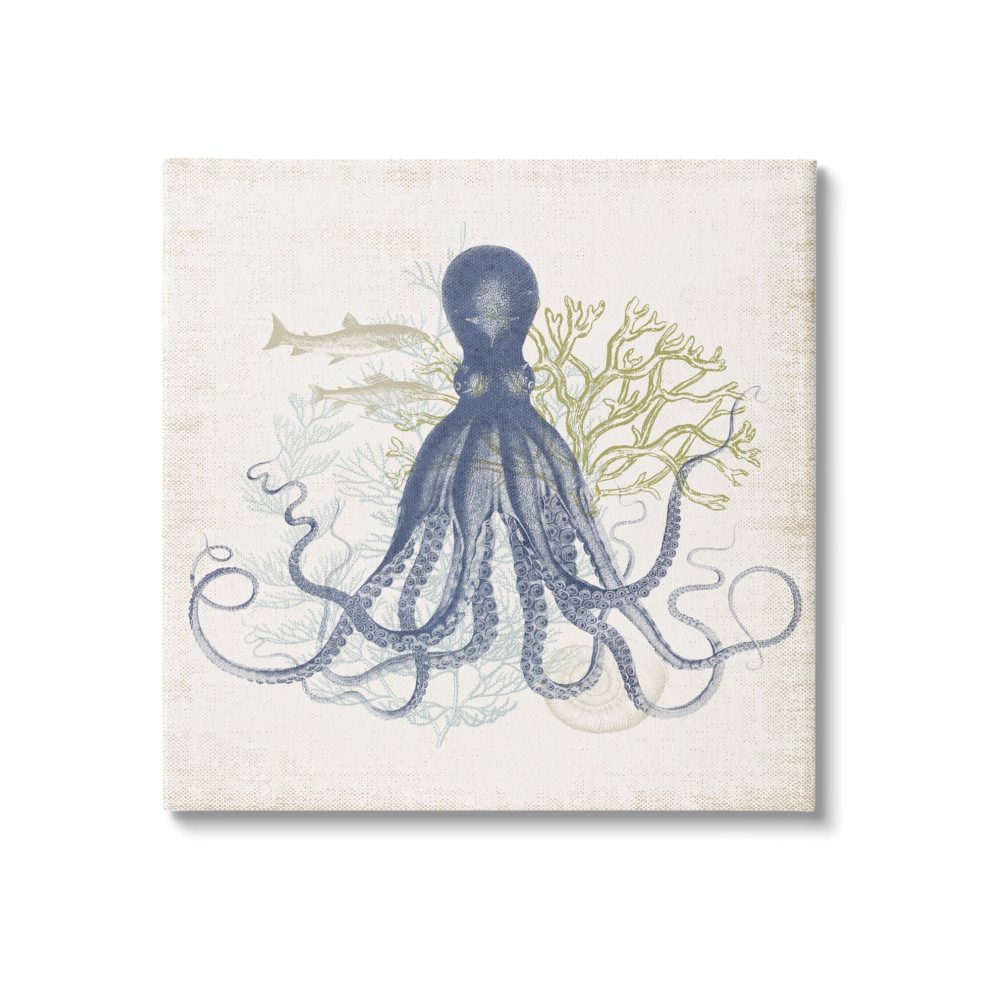 Stupell Octopus Tentacles Layered Fish & Ocean Botanicals Canvas Wall Art, Design by Victoria Barnes