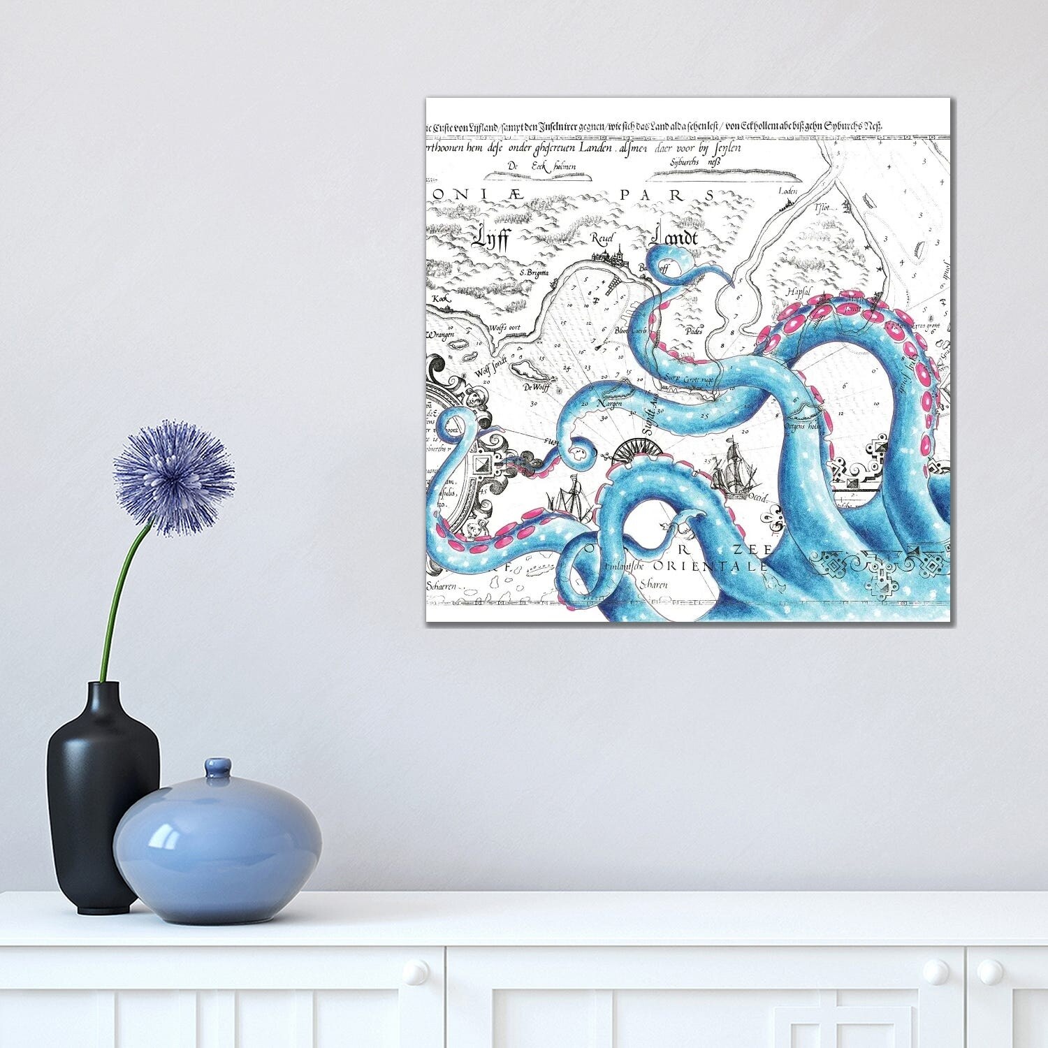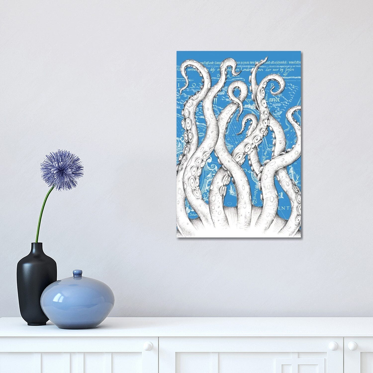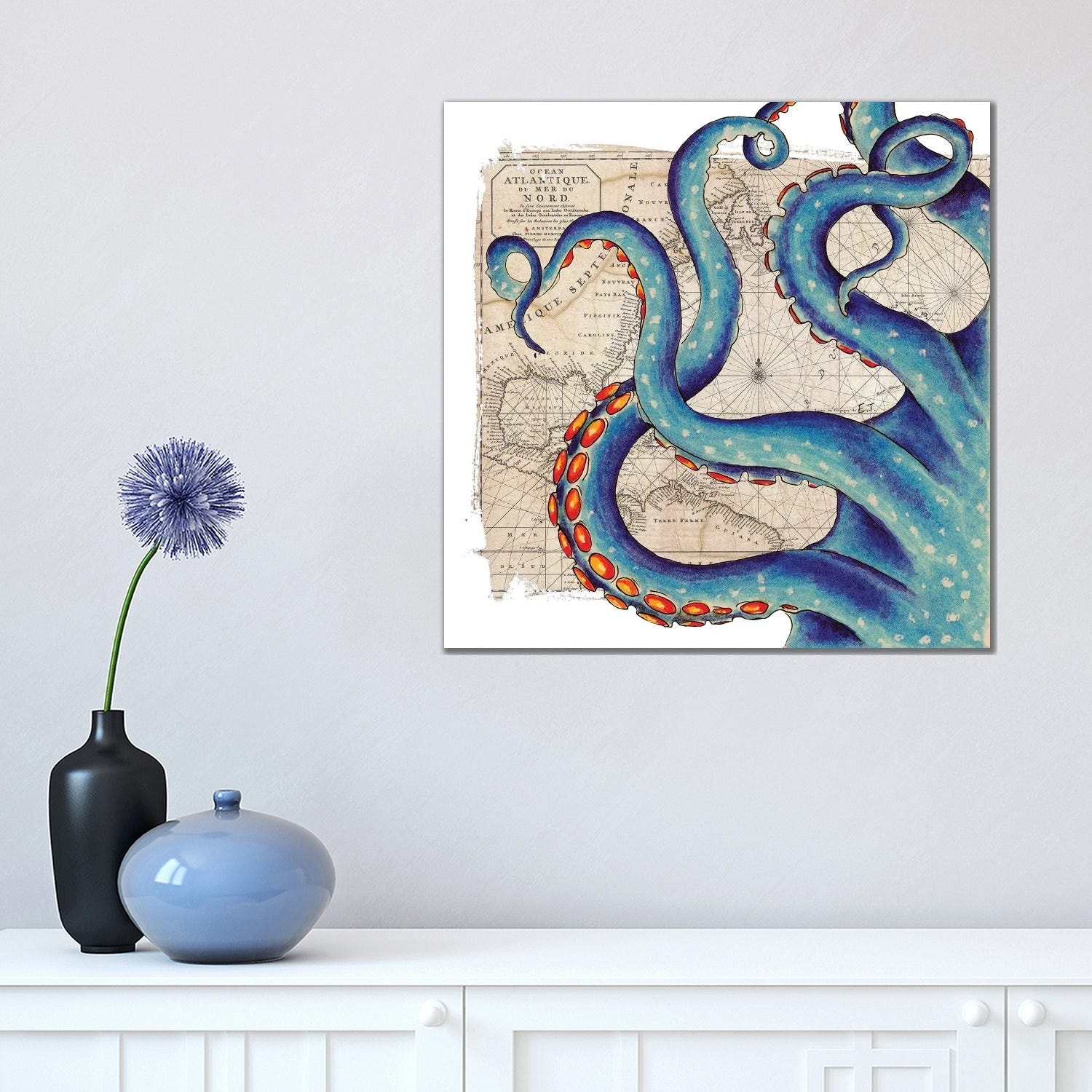 iCanvas "Tentacles Octopus Blue Watercolor Nautical Map" by Seven Sirens Studios