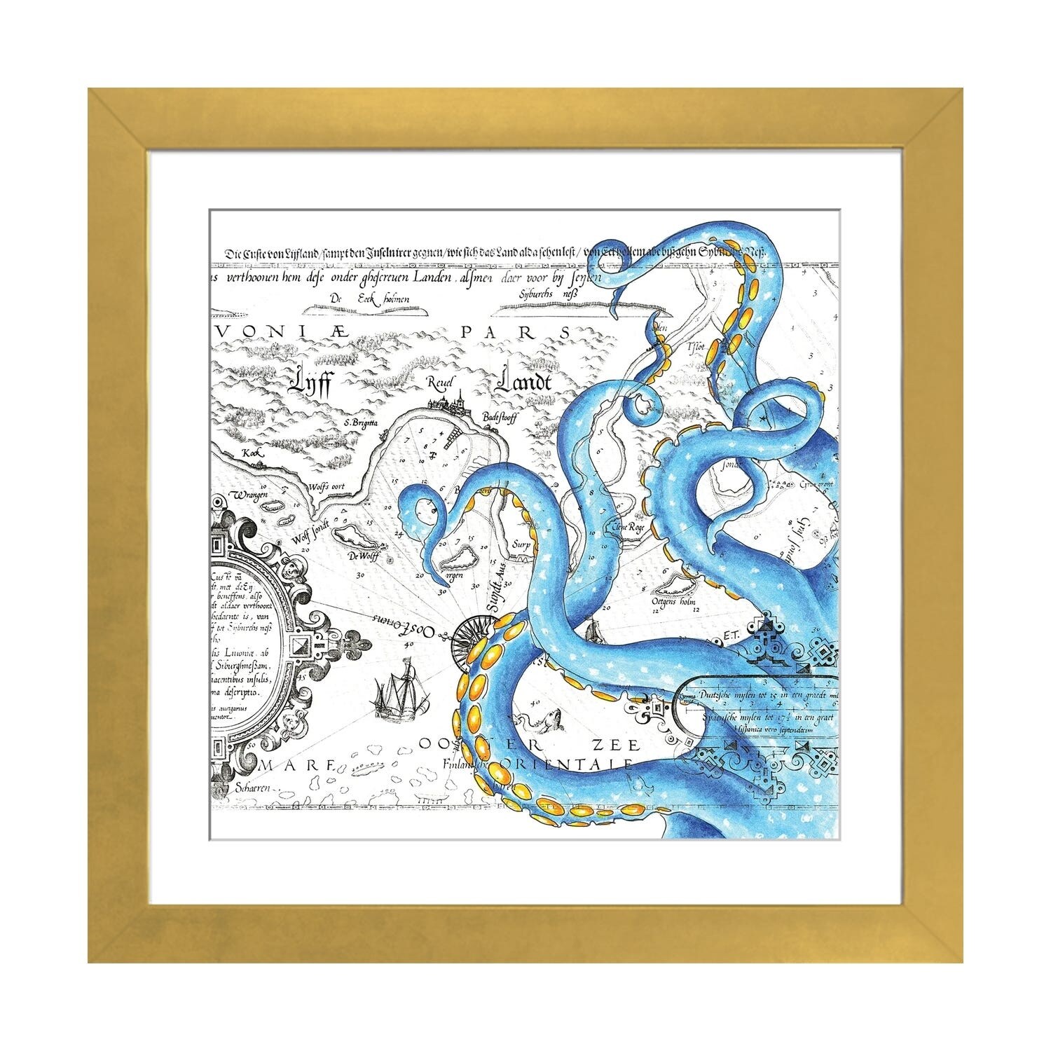 iCanvas "Golden Blue Tentacles Octopus" by Seven Sirens Studios Canvas Print