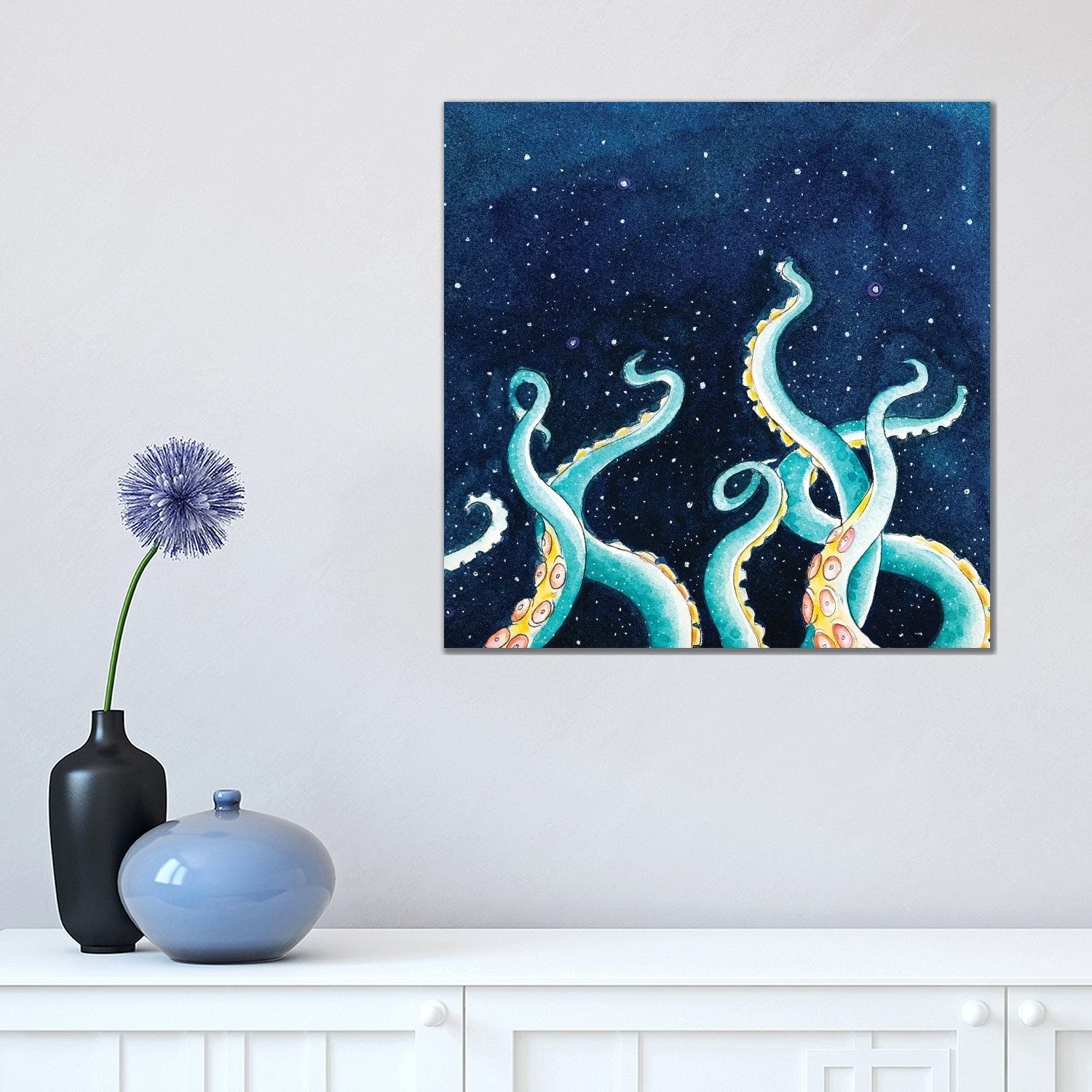 iCanvas "Tentacles Octopus Starry Night Watercolor Art" by Seven Sirens Studios Canvas Print
