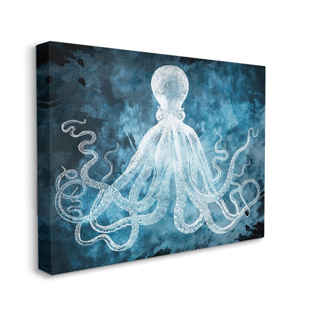 Stupell Underwater Octopus Tentacles Blue White Nautical Design Canvas Wall Art