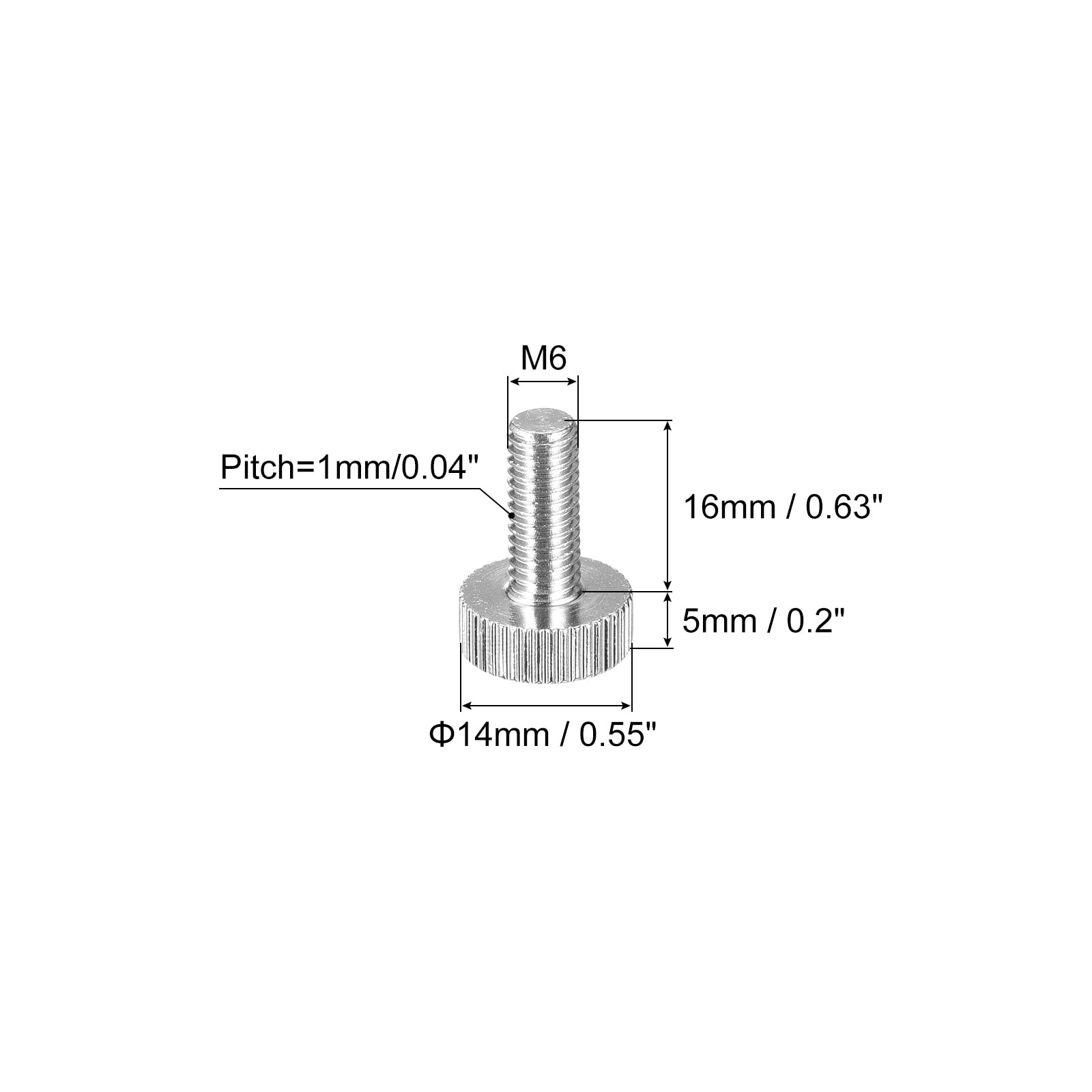 M8x60mm Male Thread Knurled Clamping Knobs Grip Thumb Screw on 6Pcs - Black,Silver Tone