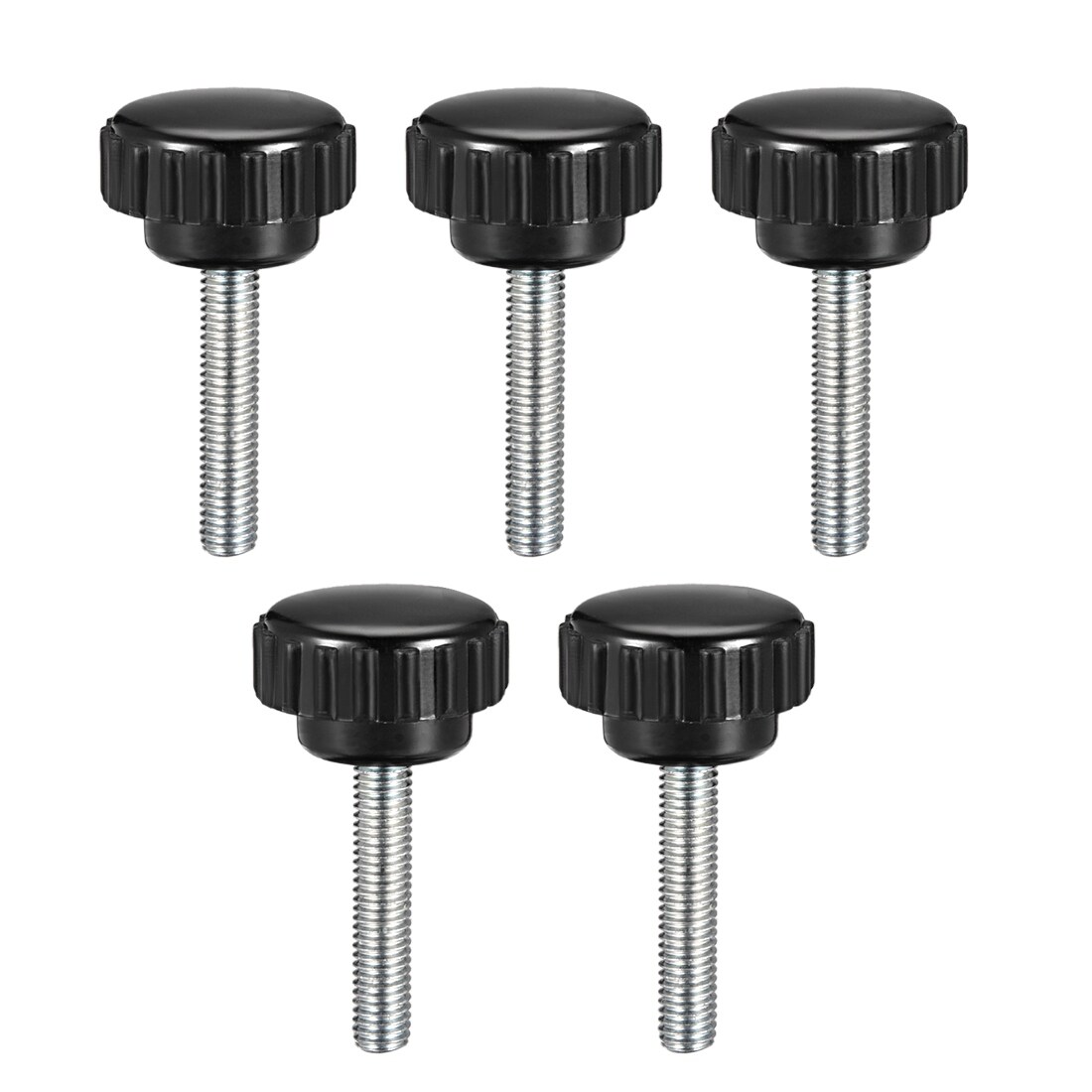 M5x25mm Male Thread Knurled Clamping Knobs Grip Thumb Screw on 5Pcs - Black,Silver Tone