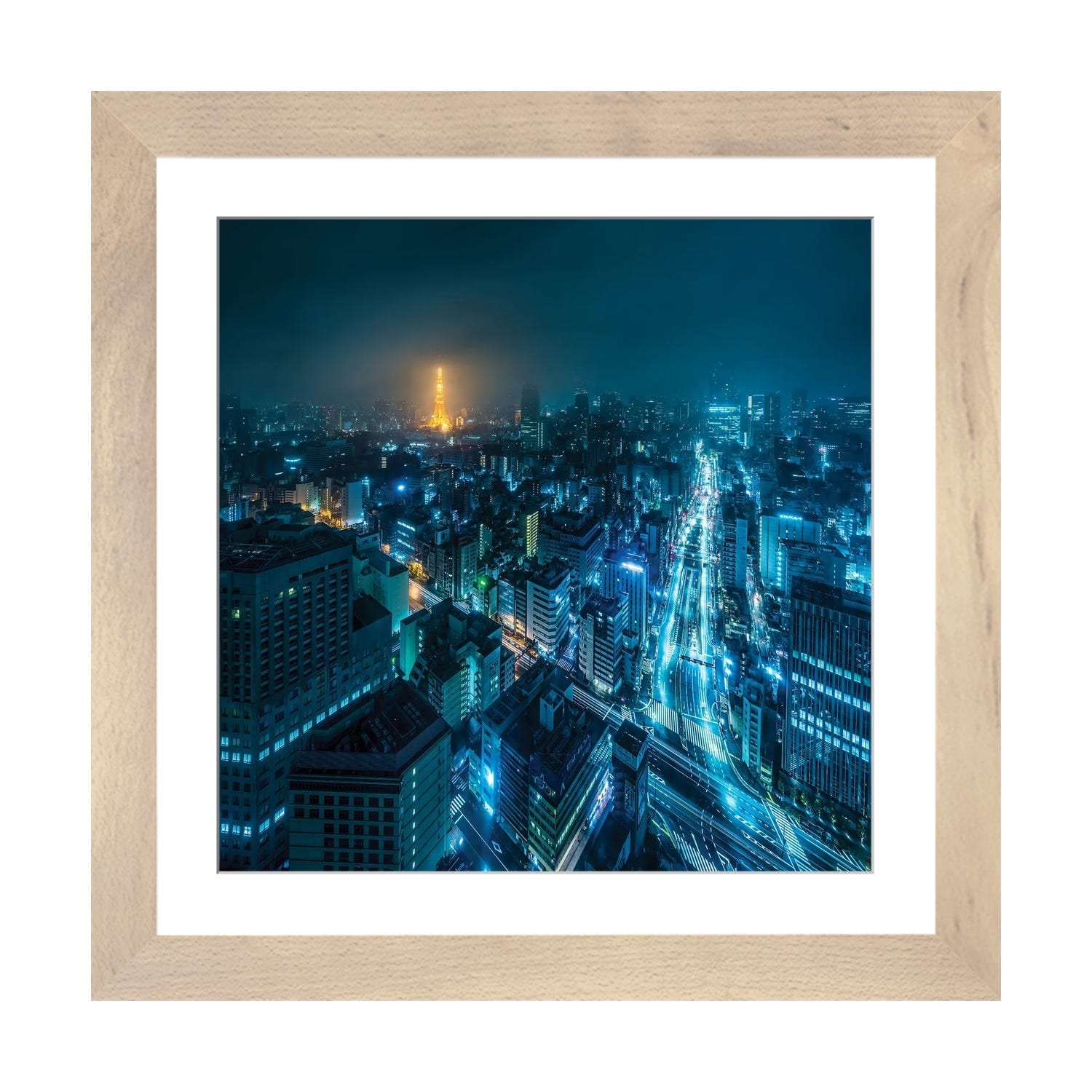 Tokyo Night View Print on Wood by Takao Kataoka - Multi-Color
