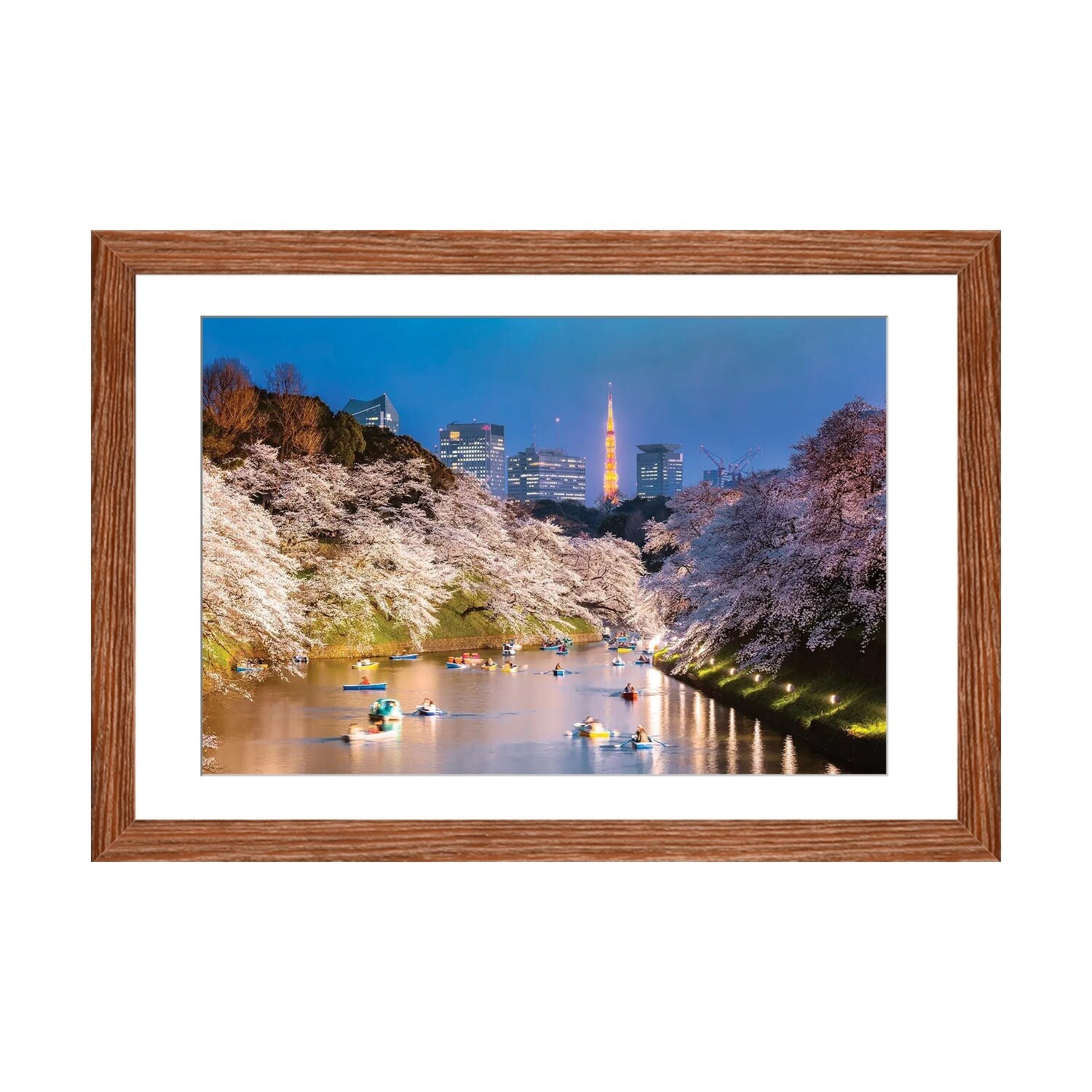"Cherry blossoms at Meguro river, Tokyo, Japan" Black Float Frame Canvas Art