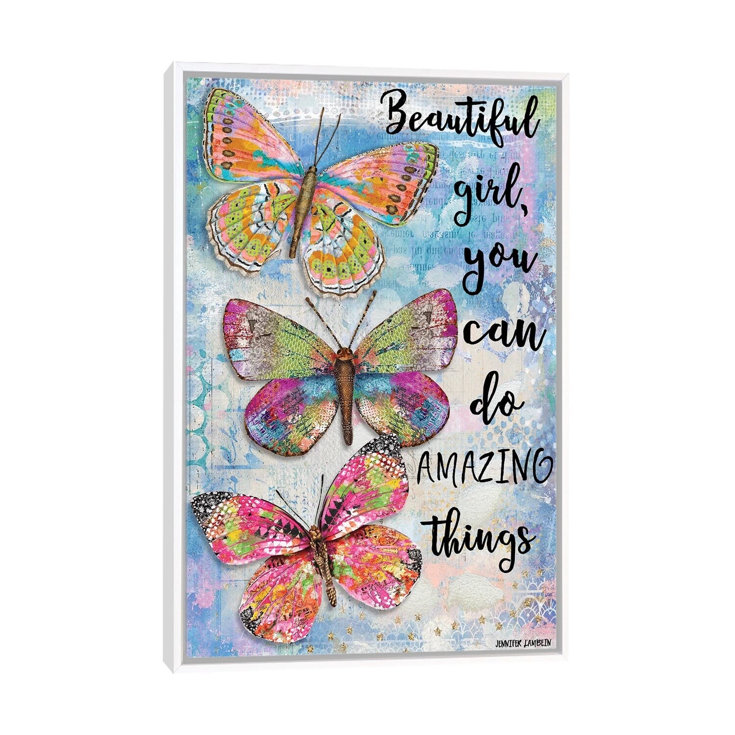 iCanvas "Beautiful Girl Butterfly Trio" by Jennifer Lambein Framed