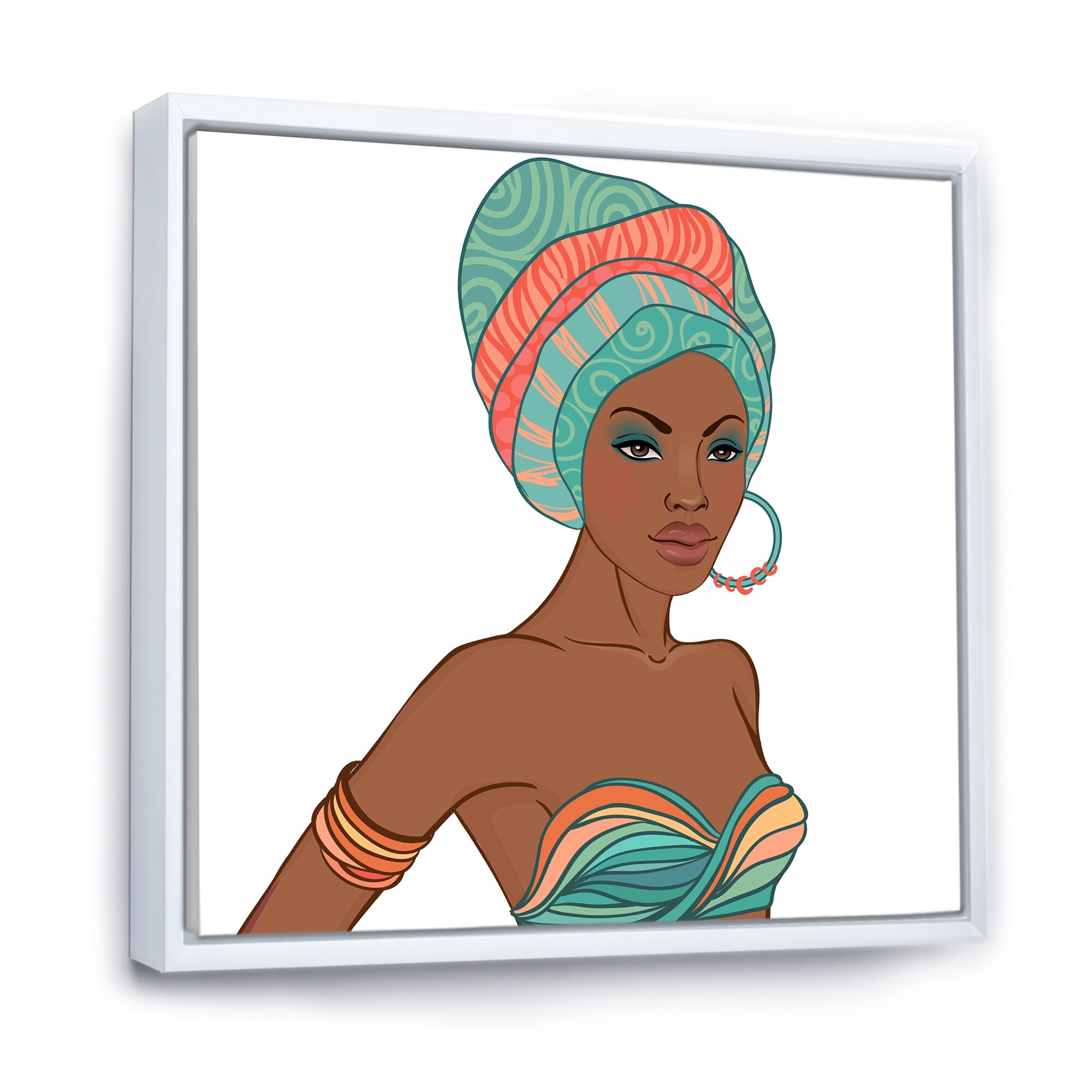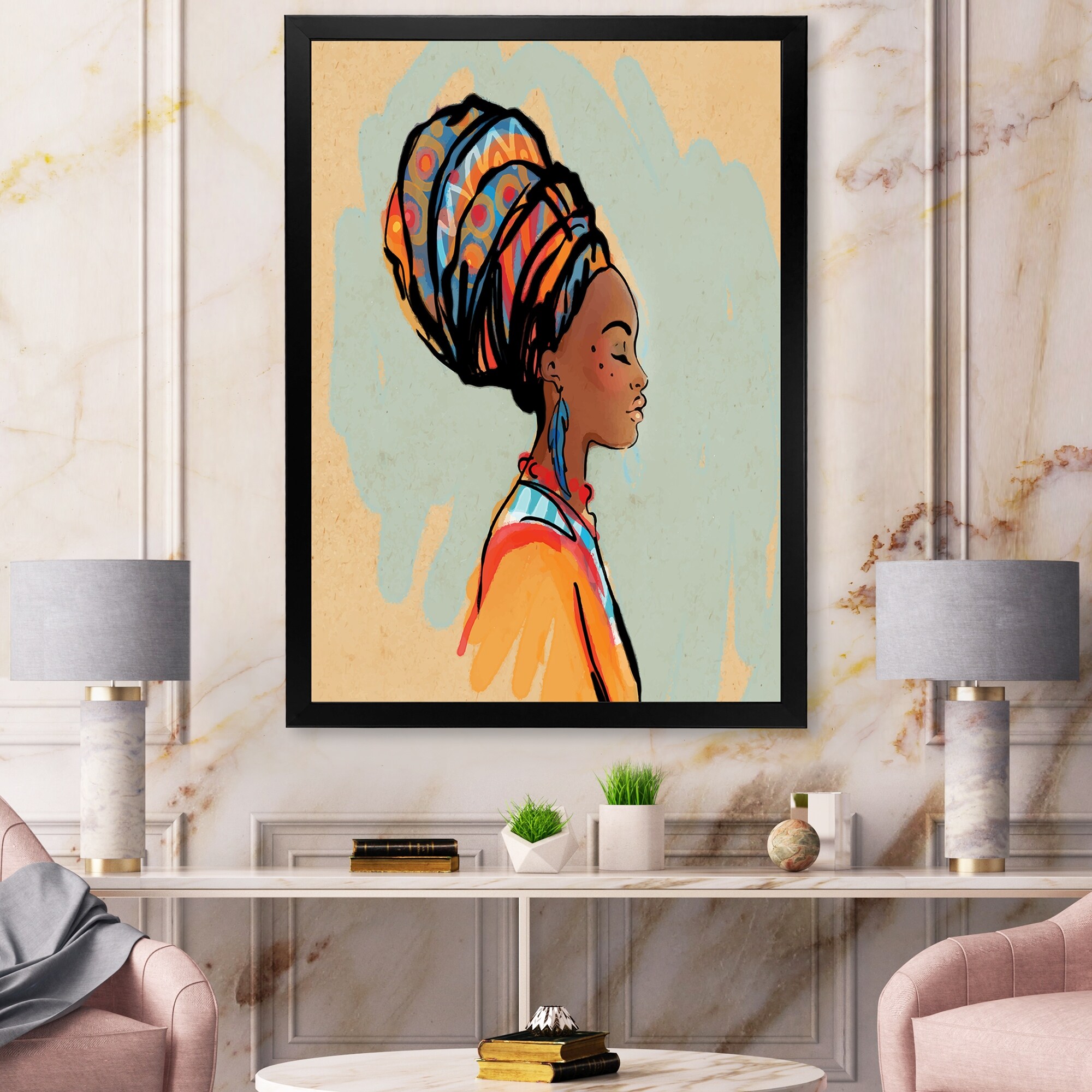 Designart "African American Woman with Turban II" Modern Framed Canvas Wall Art Print