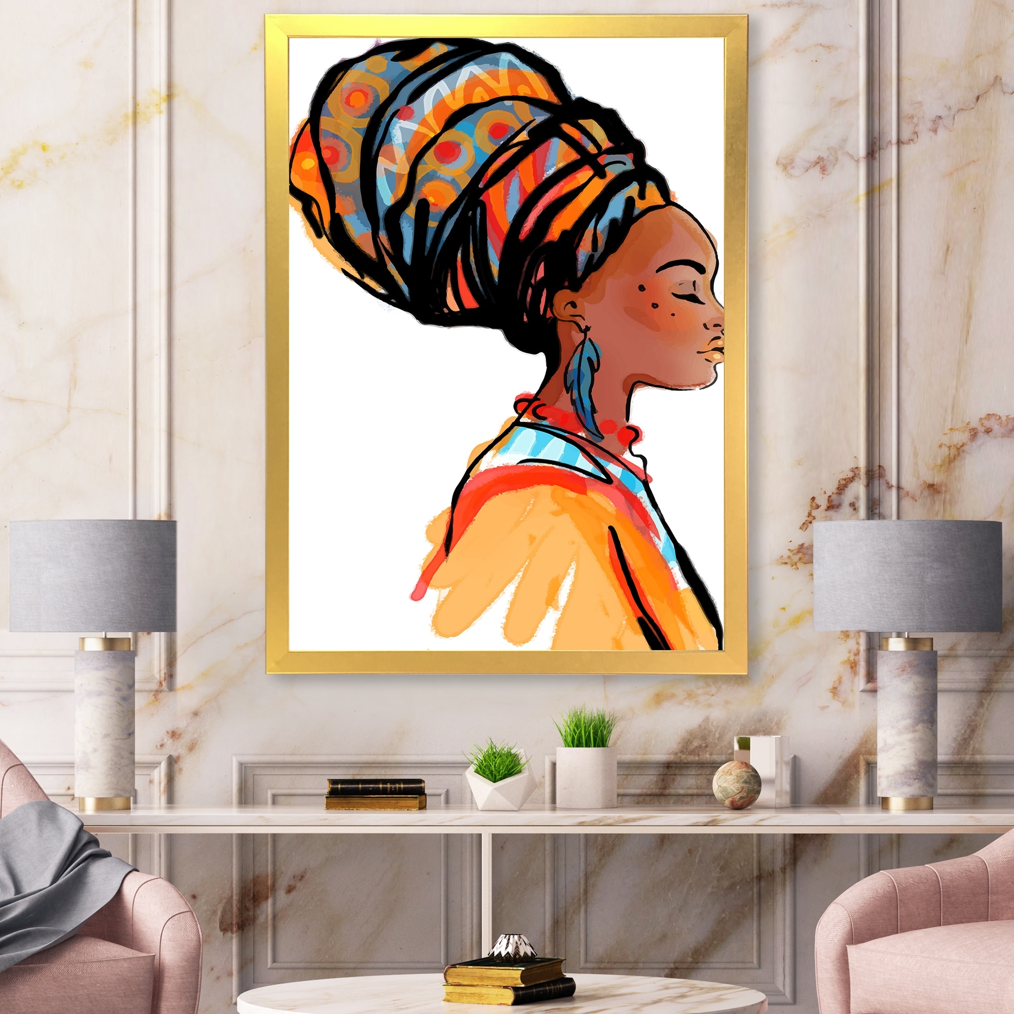 Designart "African American Woman with Turban V" Modern Framed Canvas Wall Art Print