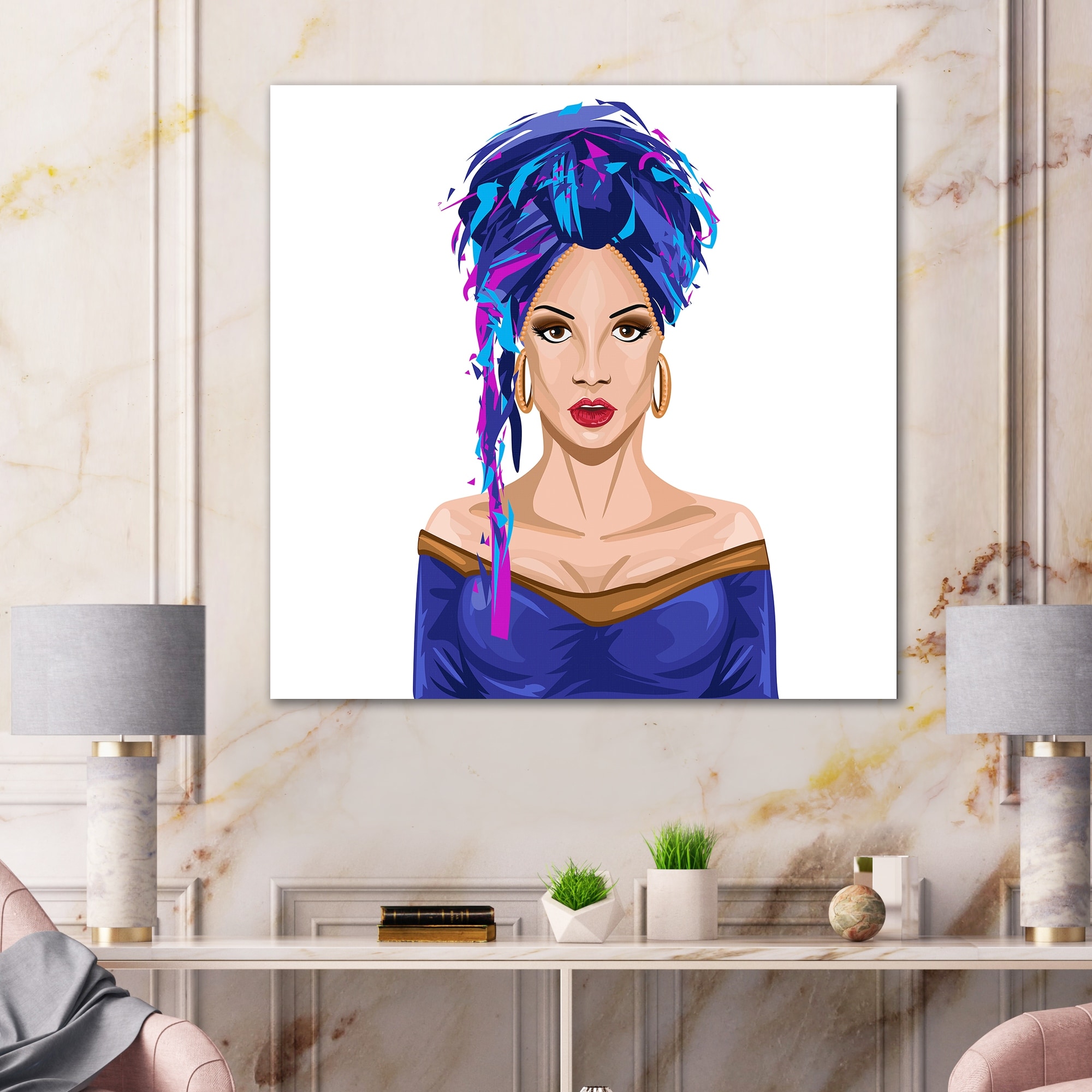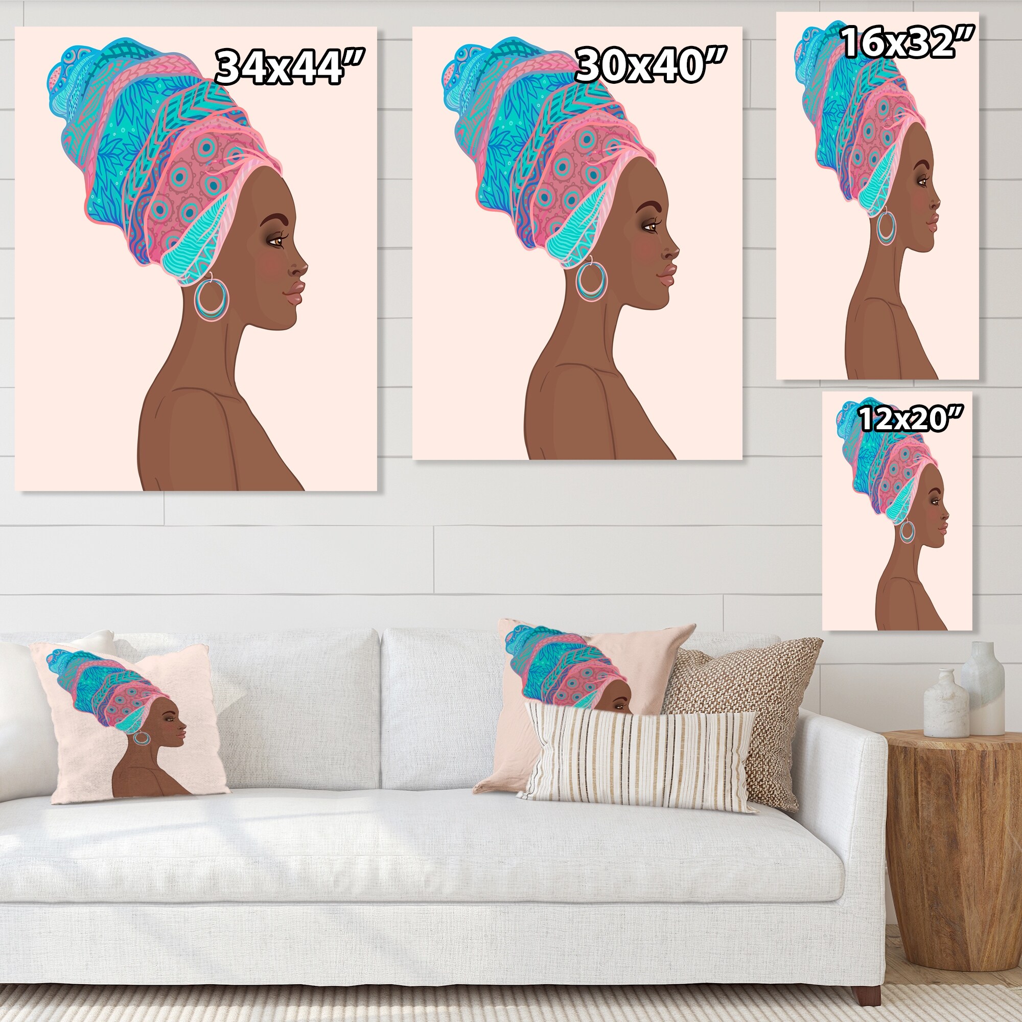 Designart "African American Woman in Turban" Glam Canvas Wall Art Print