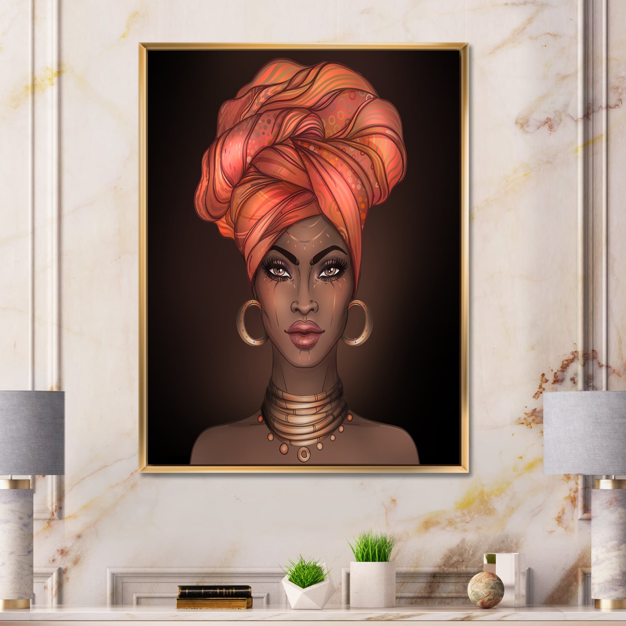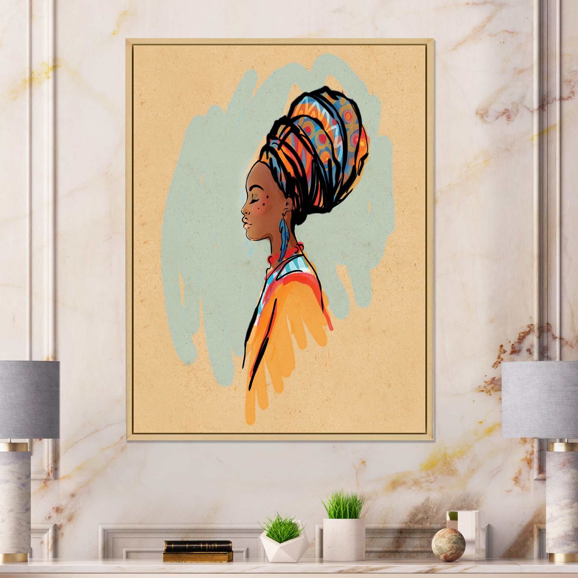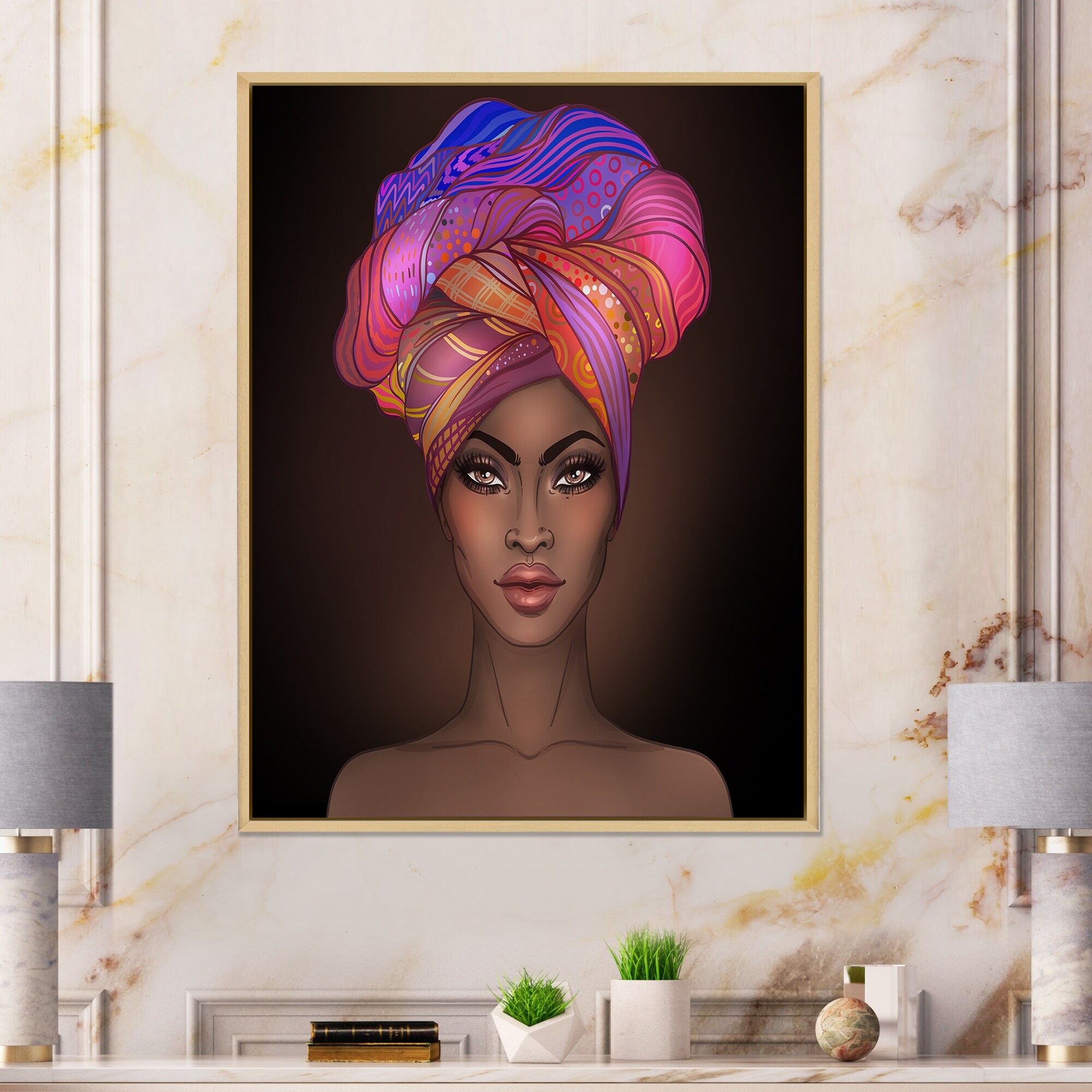 Designart "African American Woman with Turban I" Modern Framed Canvas Wall Art Print