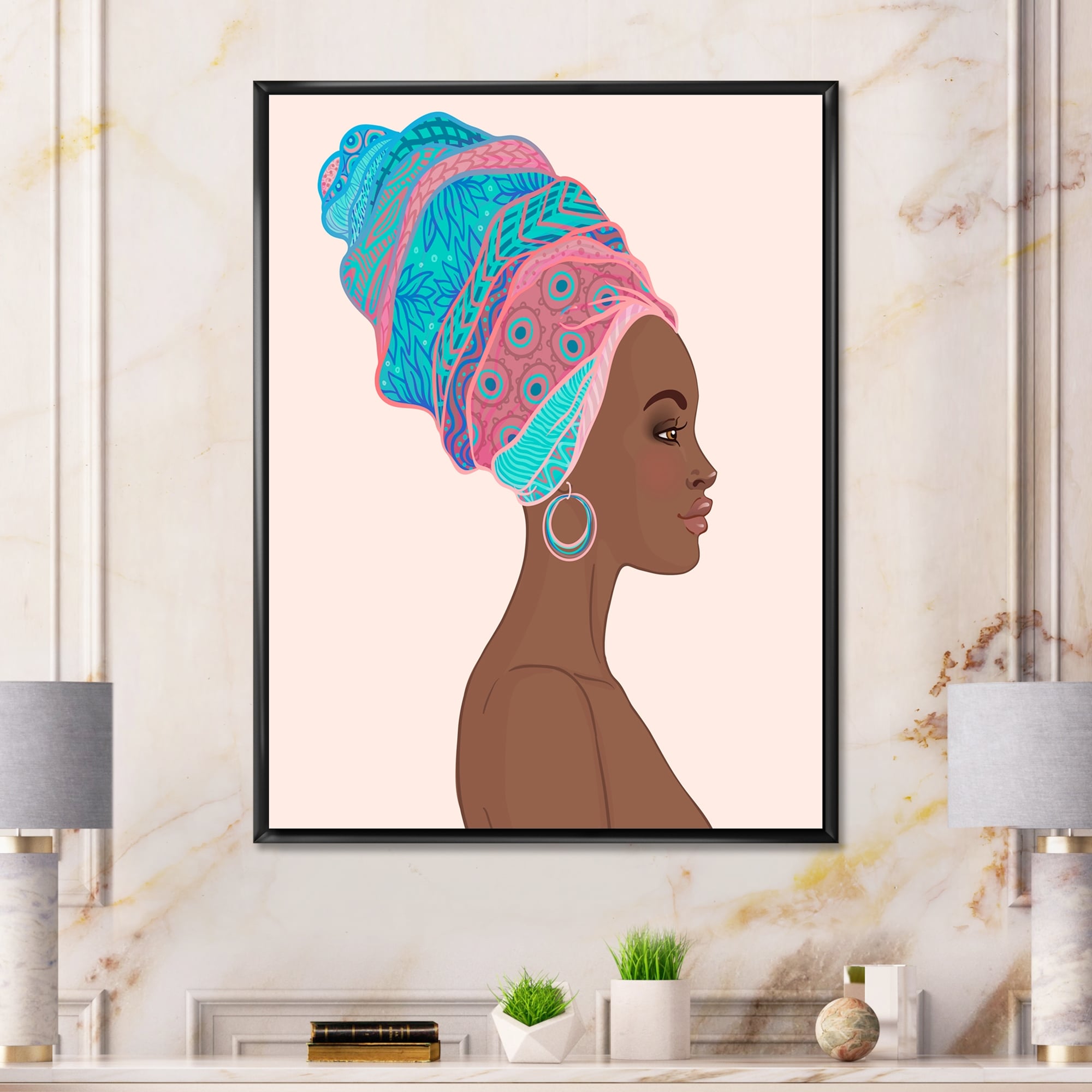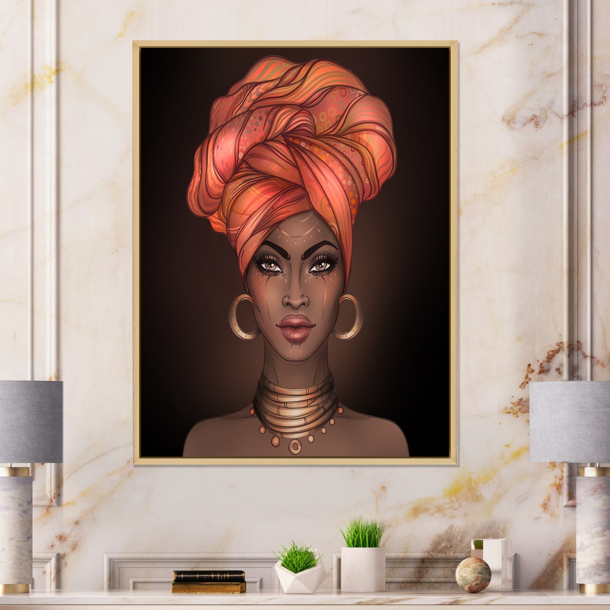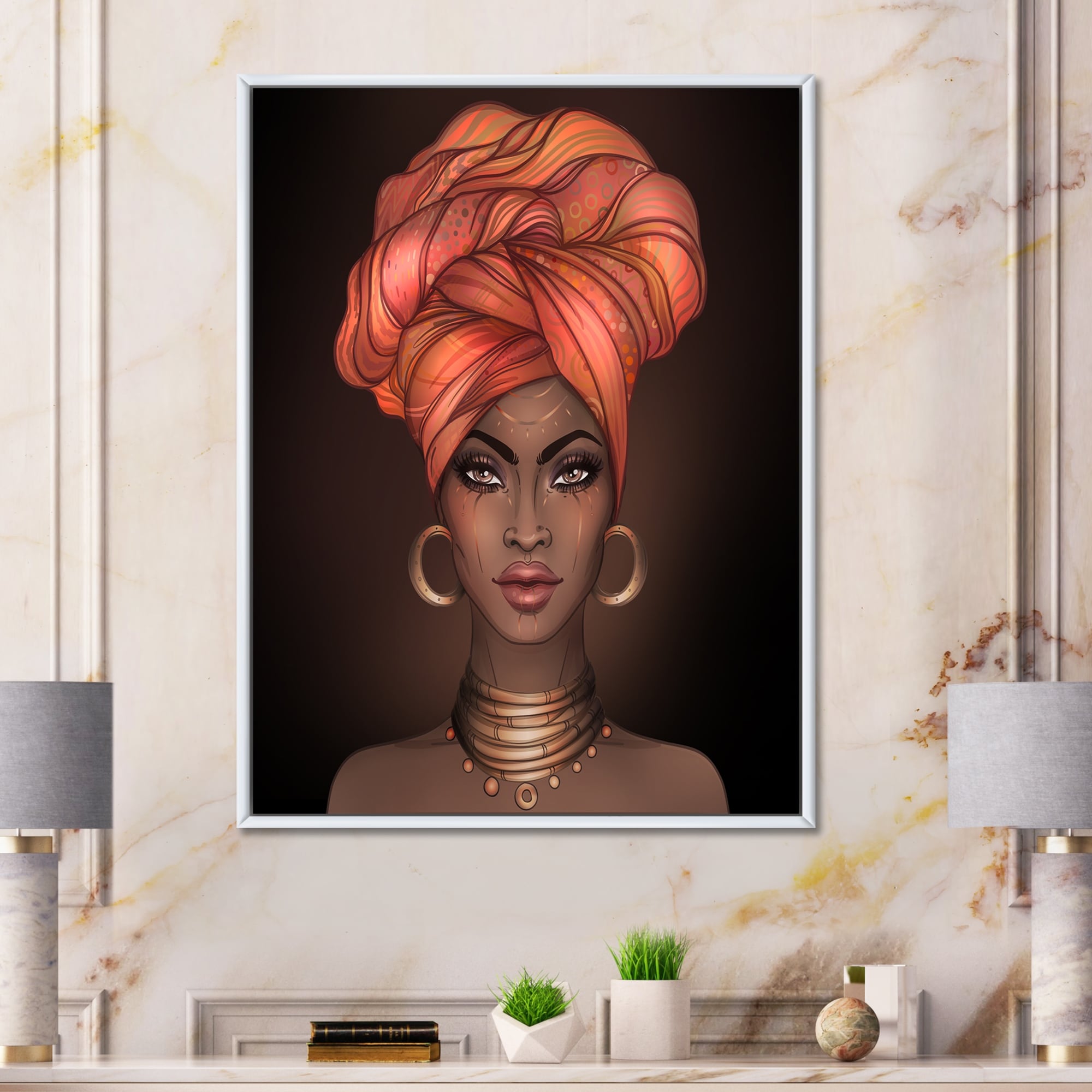 Designart "African American Woman with Turban I" Modern Framed Canvas Wall Art Print