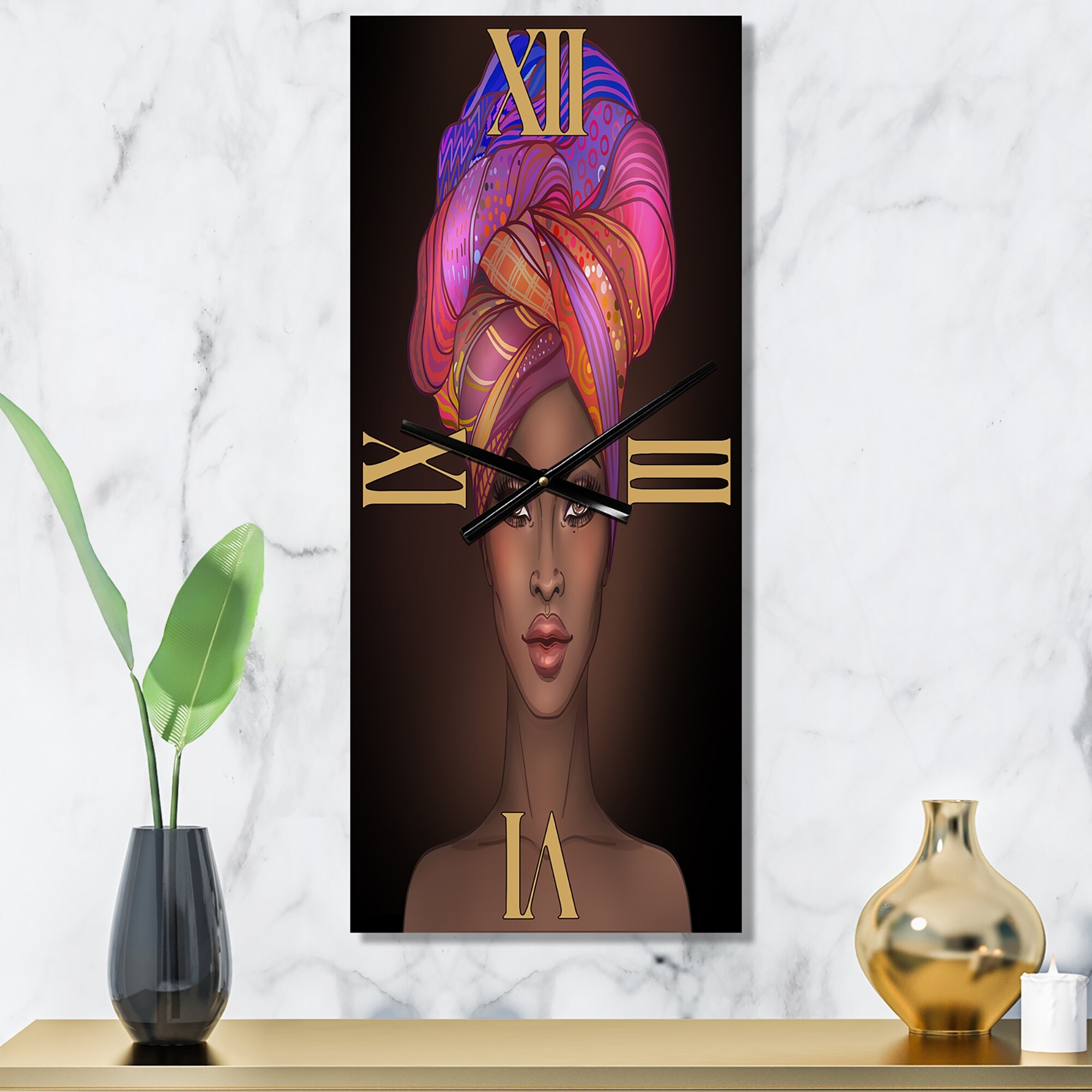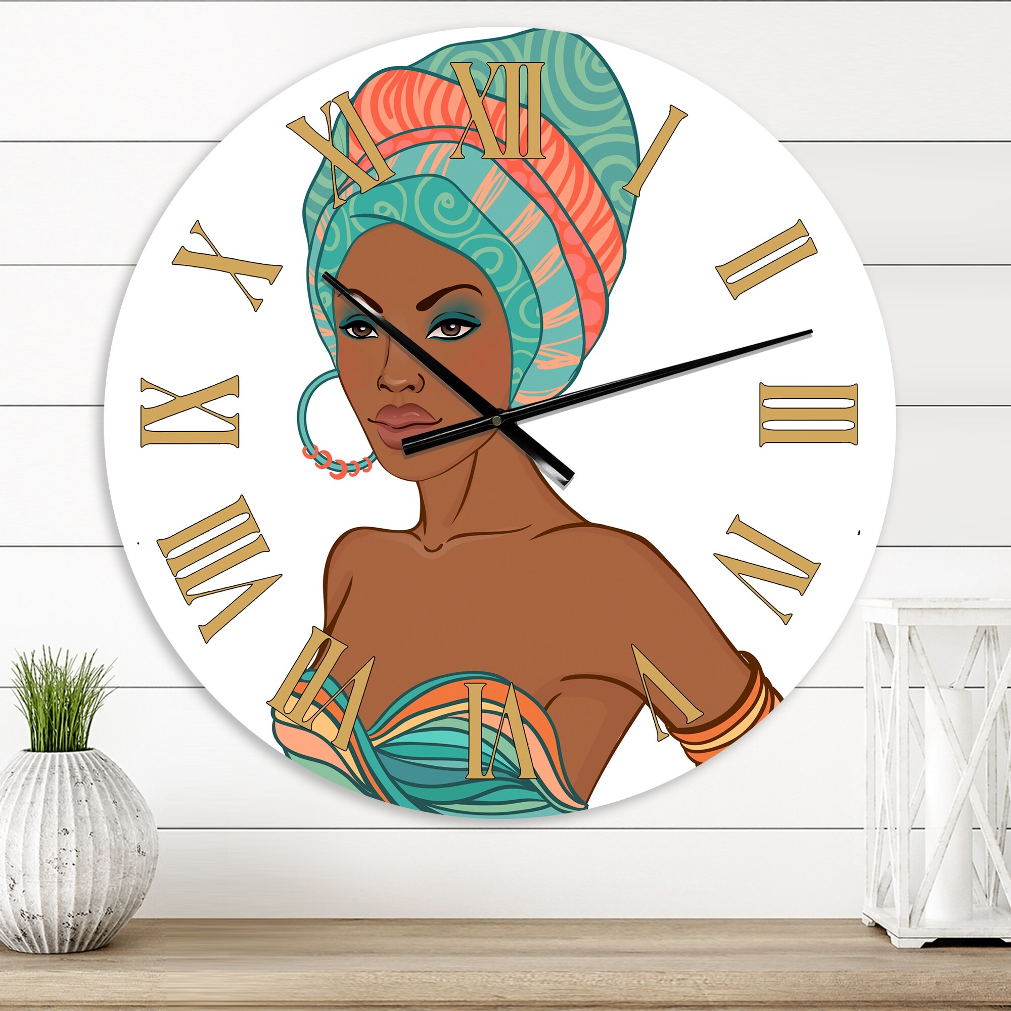 Designart 'African American Woman with Turban VI' Modern wall clock