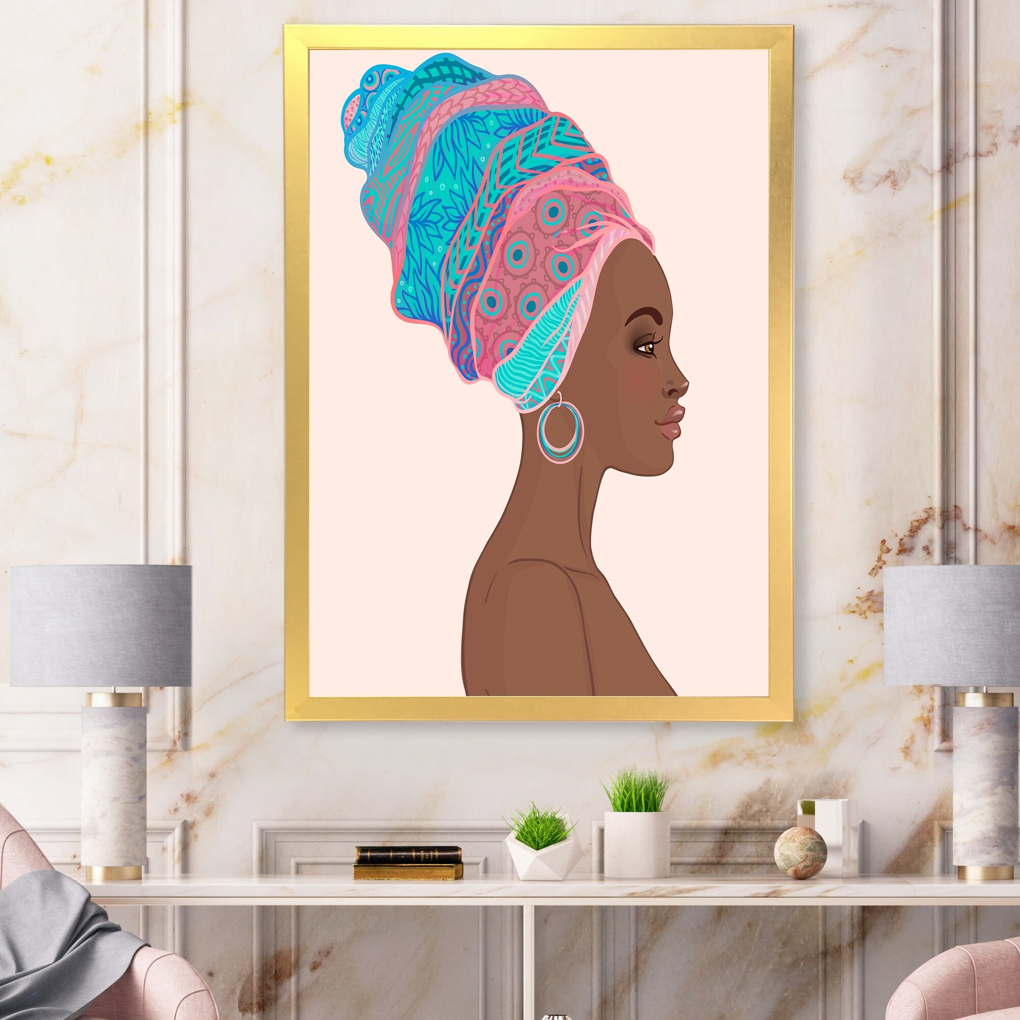 Designart "African American Woman in Turban" Glam Framed Art Print