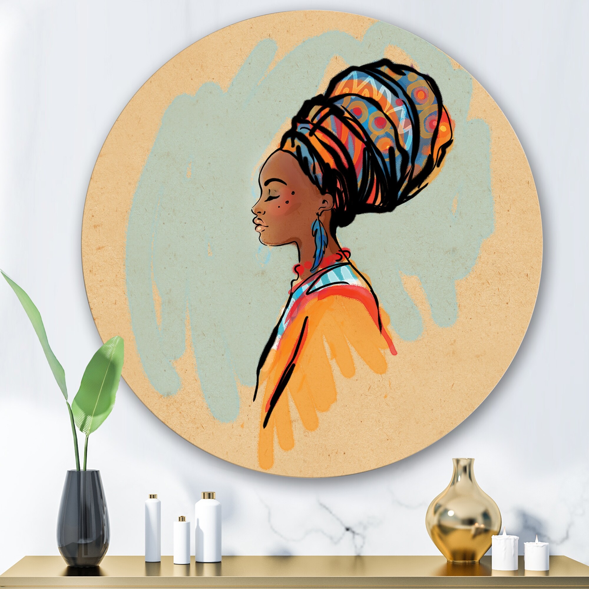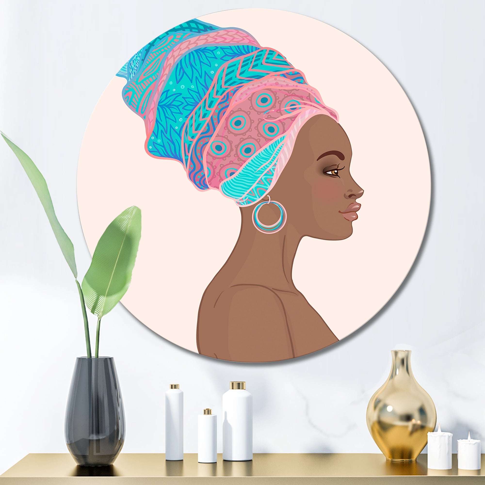 Designart 'African American Woman with Turban I' Modern Metal Circle Wall Art