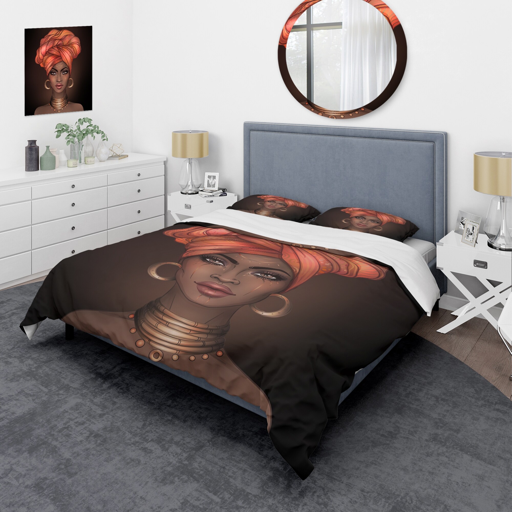 Designart 'African American Woman with Turban V' Modern Duvet Cover Set