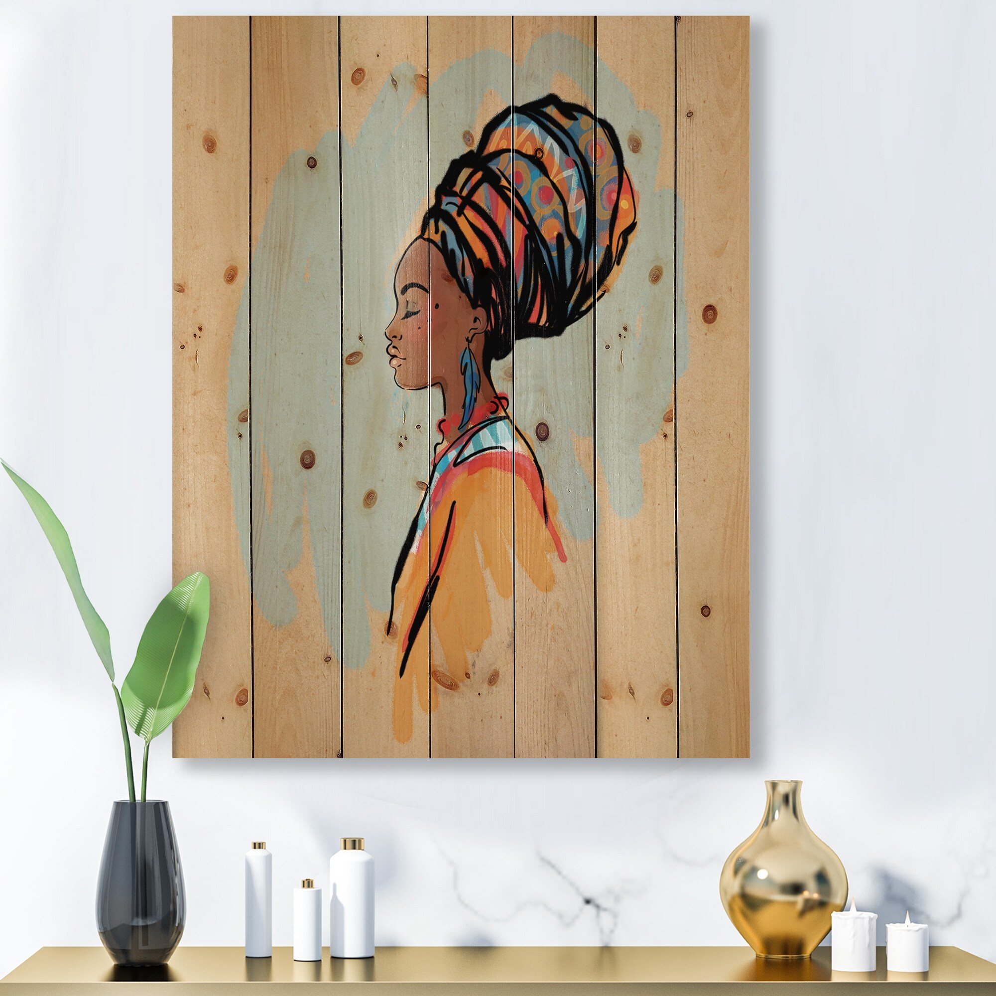 Designart 'African American Woman with Turban VI' Modern Print on Natural Pine Wood