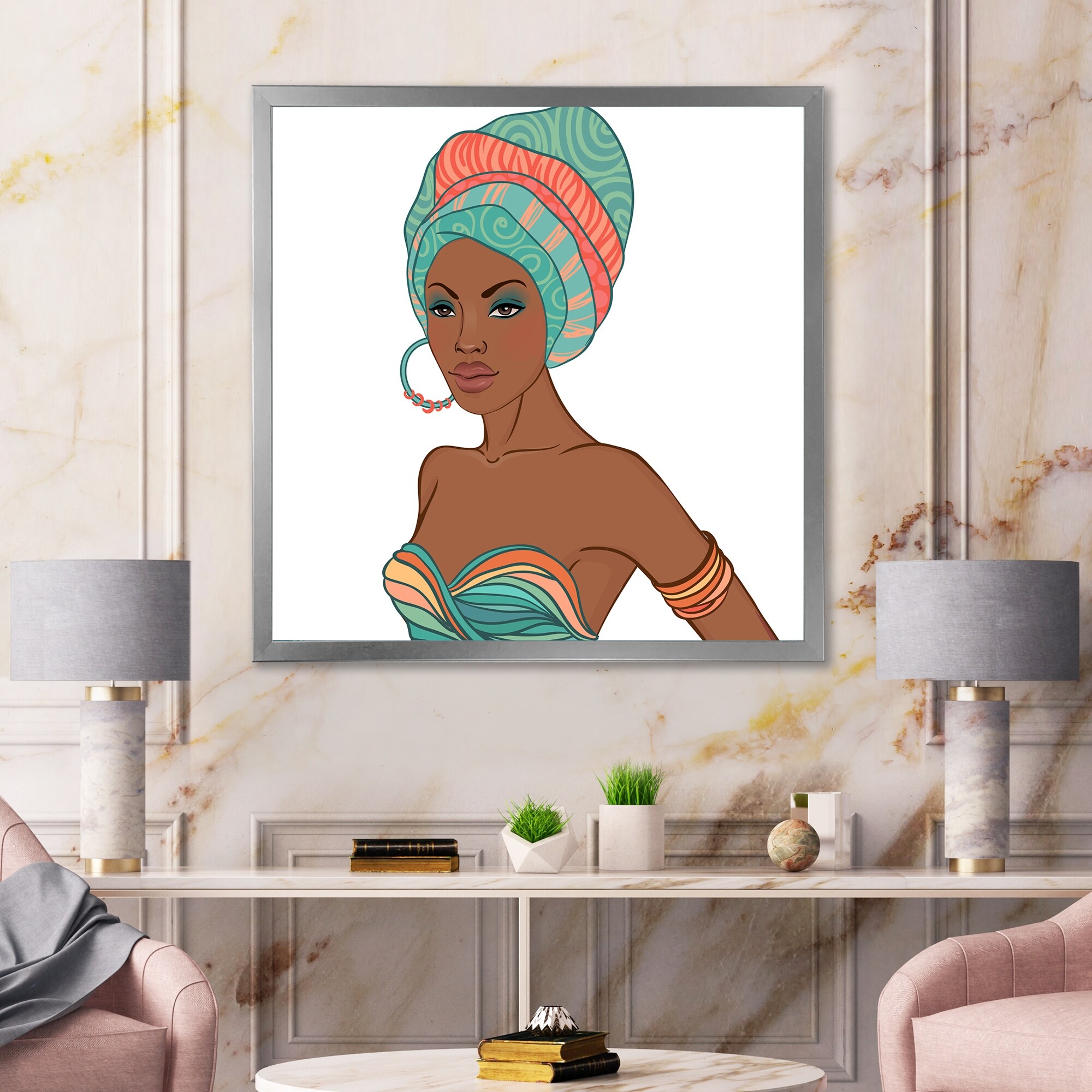 Designart "African American Woman with Turban V" Modern Framed Art Print