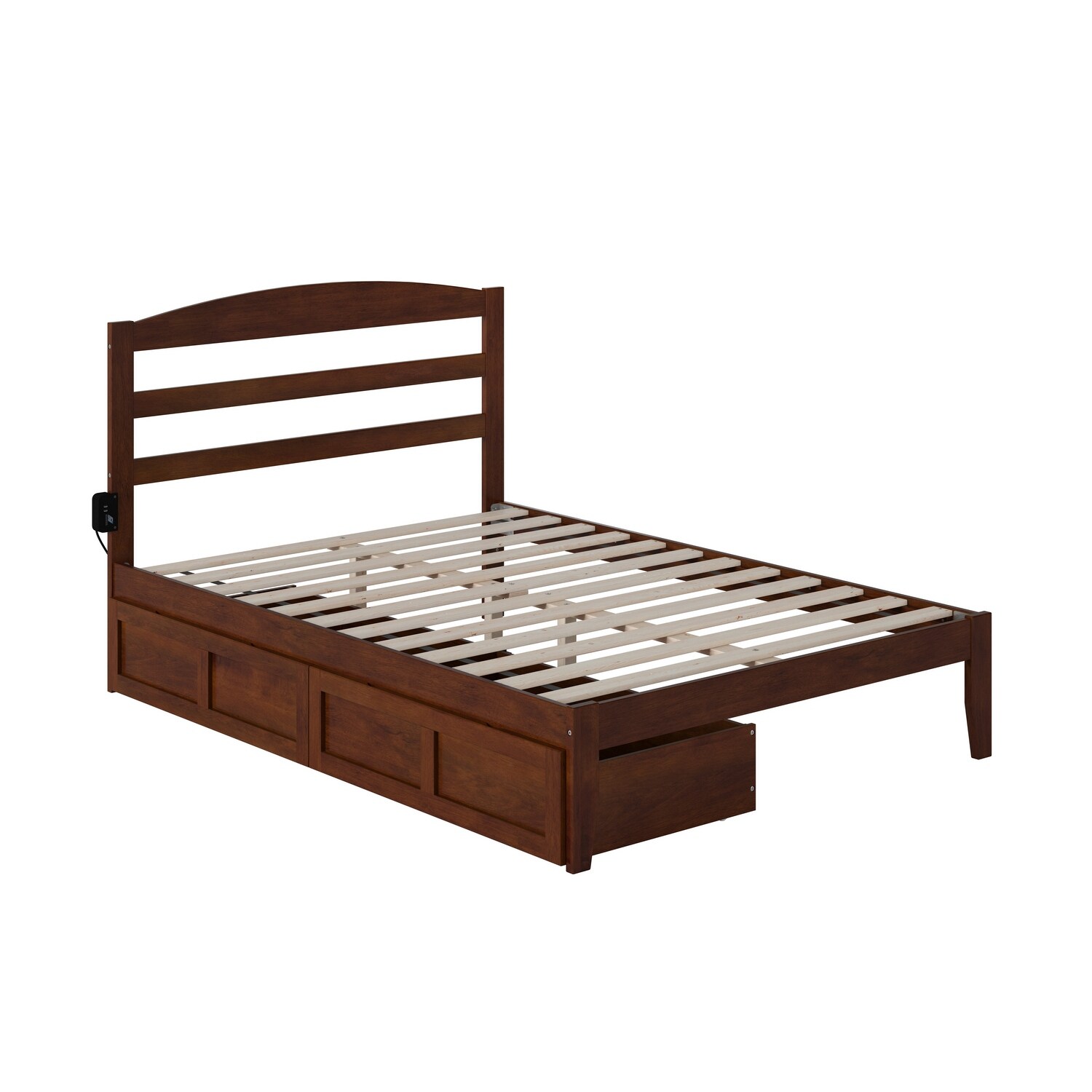 Warren Solid Wood Platform Bed with Storage Drawers (Set of 2) and Attachable USB Charger