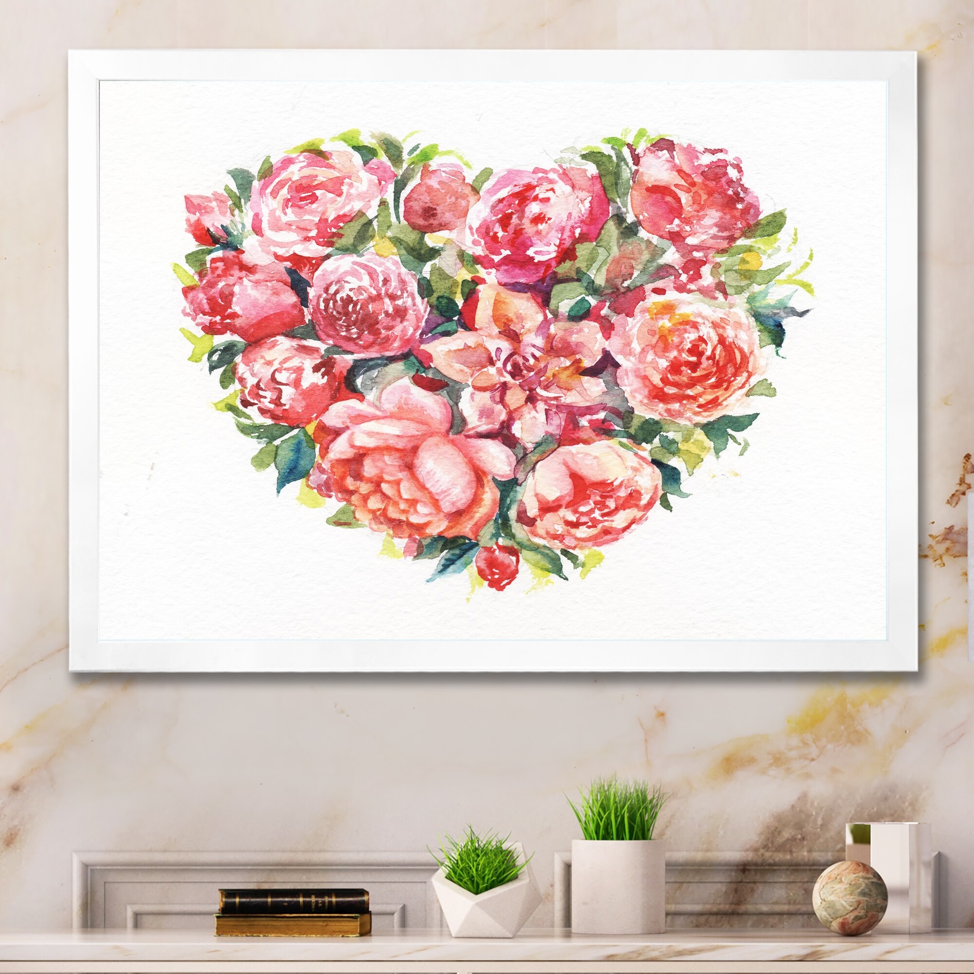 Designart "Bouquet Of Roses At Valentines" Modern Framed Wall Decor