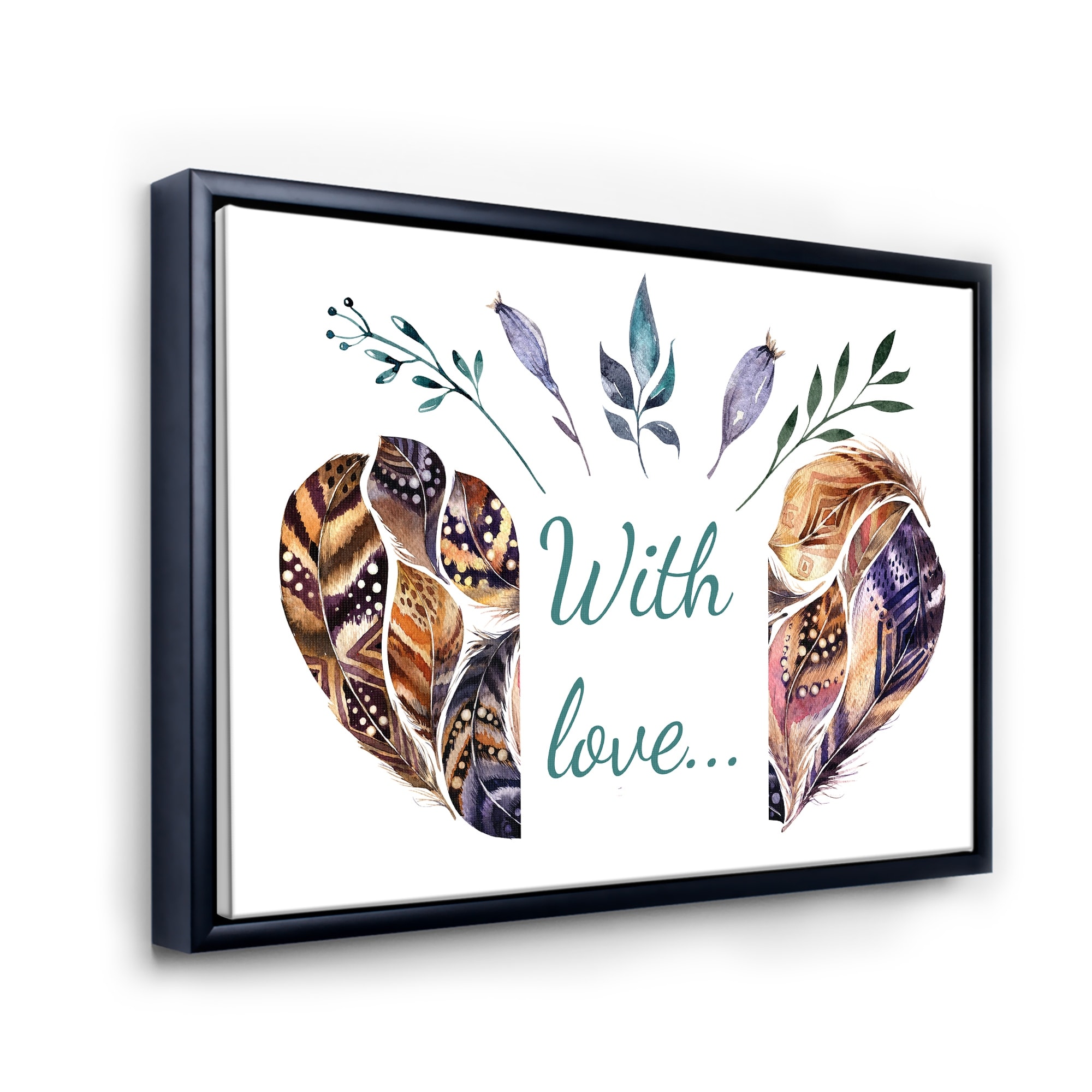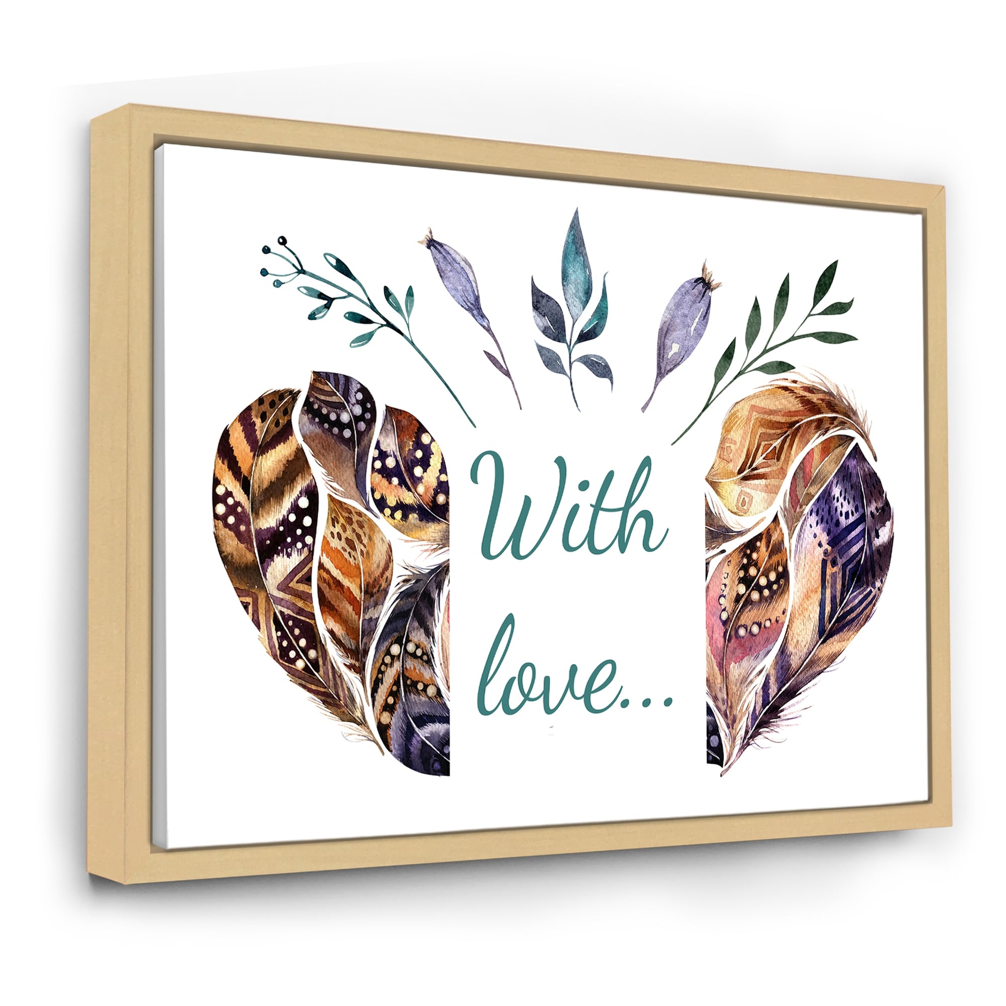 Designart "Hearted Shaped Valentine Feathers" Traditional Framed Canvas Wall Art Print