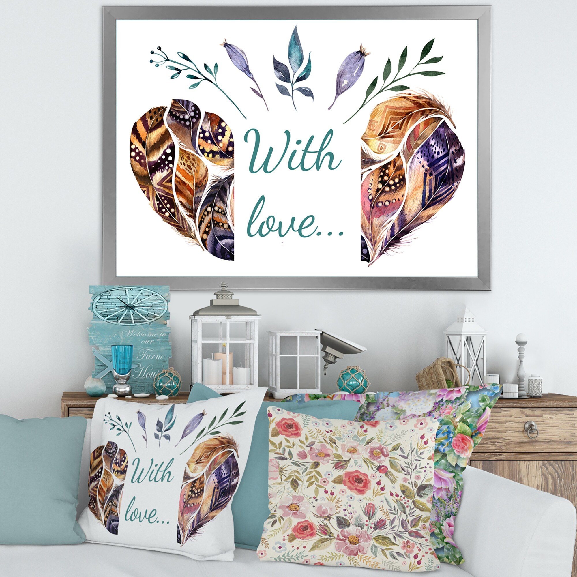 Designart "Hearted Shaped Valentine Feathers" Traditional Framed Art Print