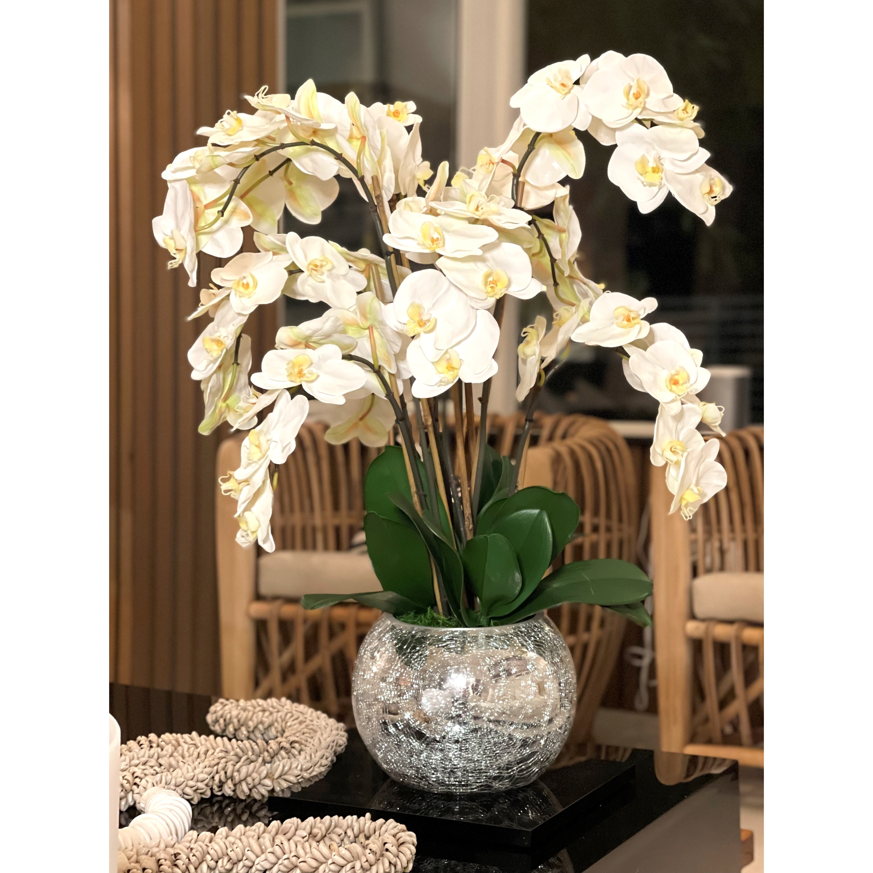 Silver Crackled Vase With Phalaenopsis Orchids - N/A