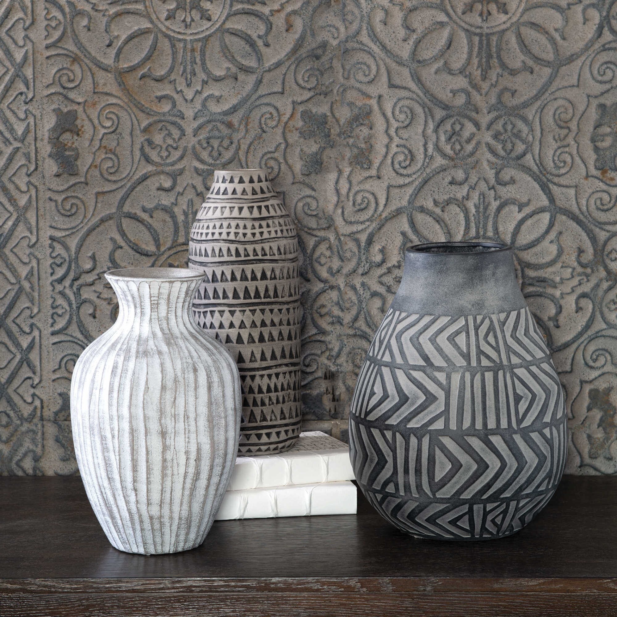 Uttermost Natchez Set of 3 Earthenware Tribal Style Vases
