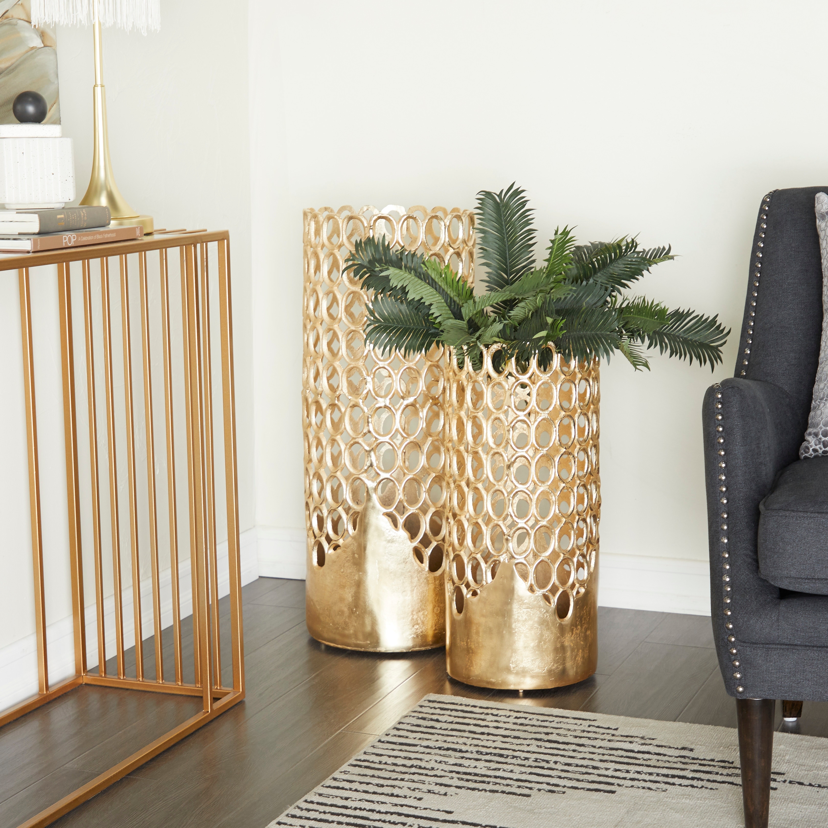 Golden Floral Tall Vase - 10.23 x 10.23 x 20.86 inches
