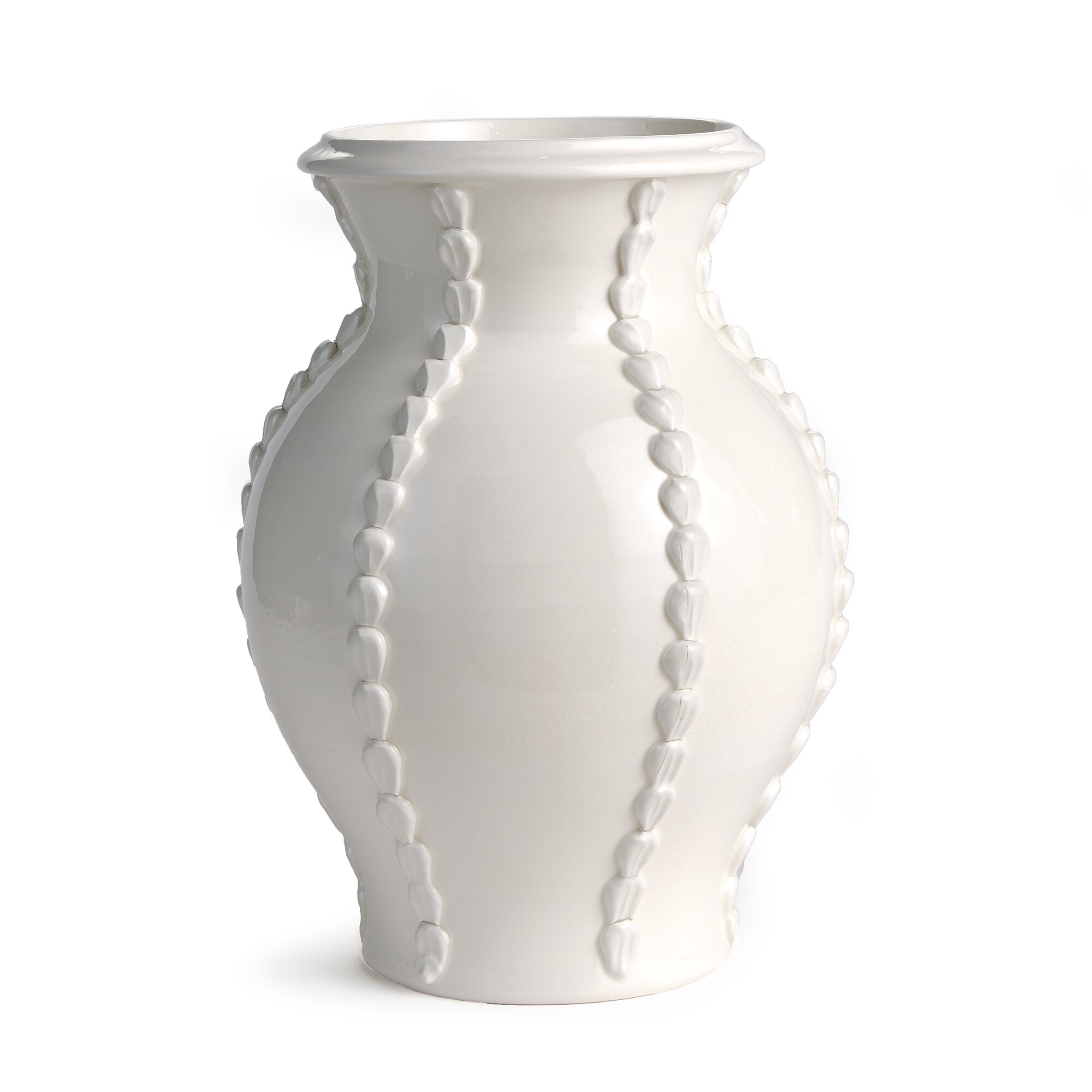 Artissance 13.7 in. Diameter Off White Porcelain Ming Ming Vase with Lotus Motif