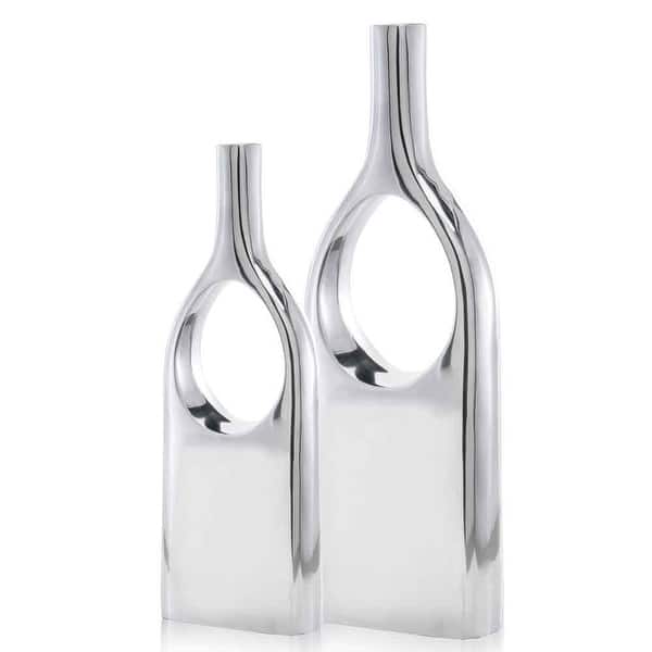 HomeRoots Set of 2 Curl Casting Design Vases in Shiny Buffed Finished - 14.5