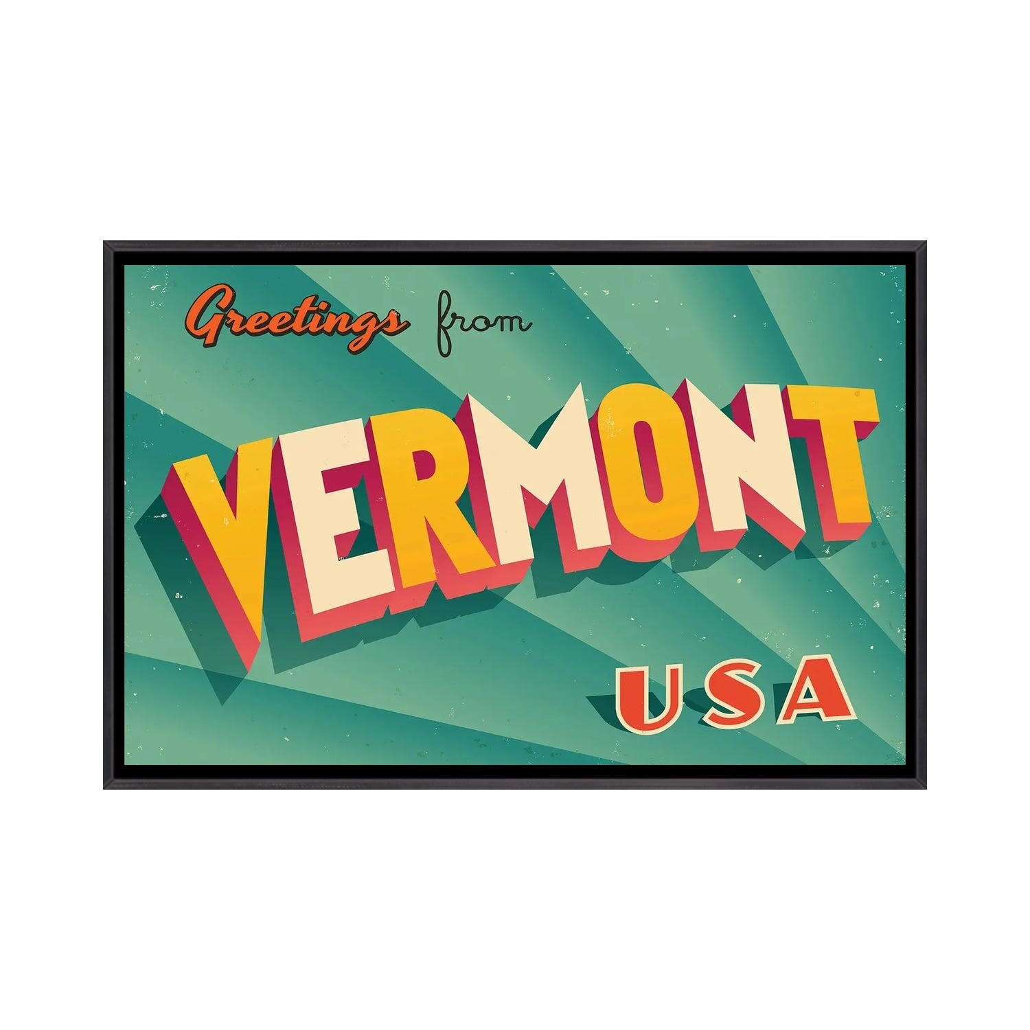 iCanvas "Greetings From Vermont" by RealCallahan Framed Canvas Print