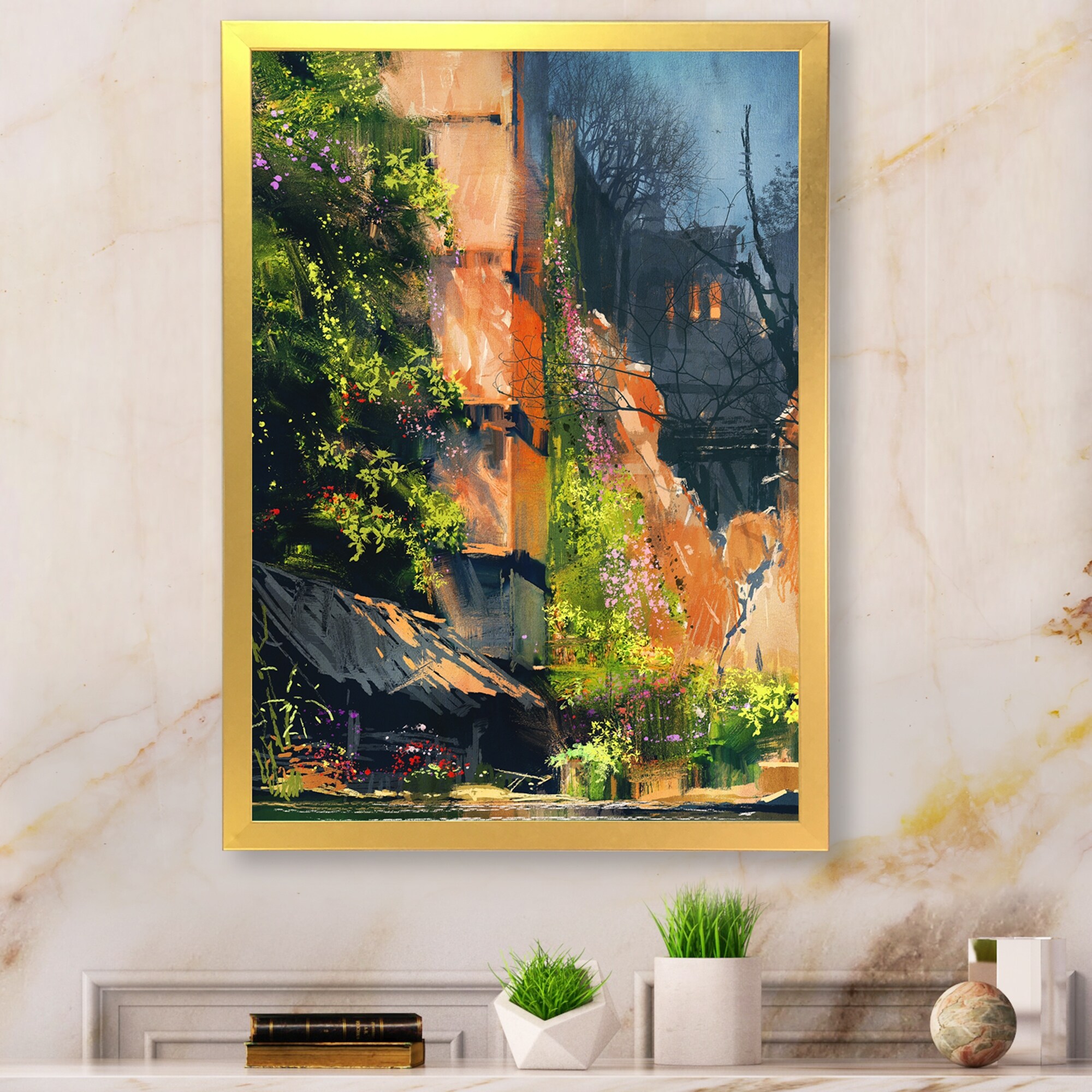 Designart "Video Game Painting of Abandoned Building" Modern Framed artwork