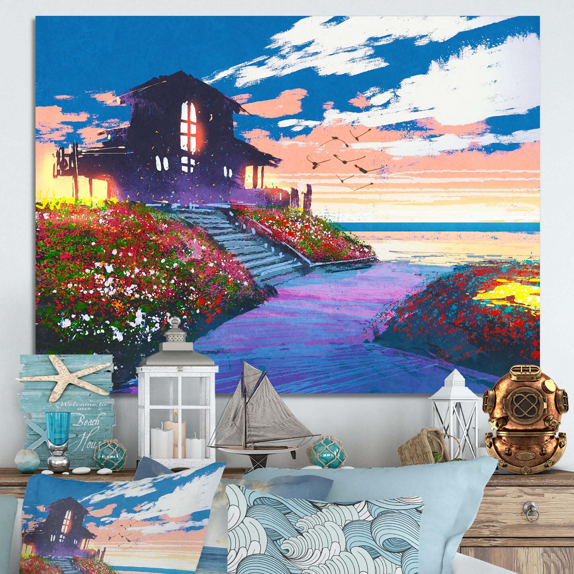 Designart "Video Game Seascape on Beach House" Nautical & Coastal Canvas Wall Decor