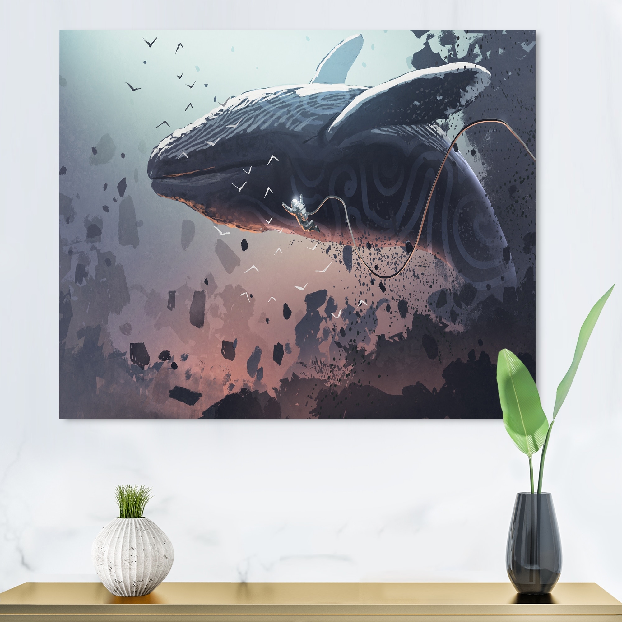 Designart "Video Game Fantasy Flying Wave" Modern Canvas Art Print