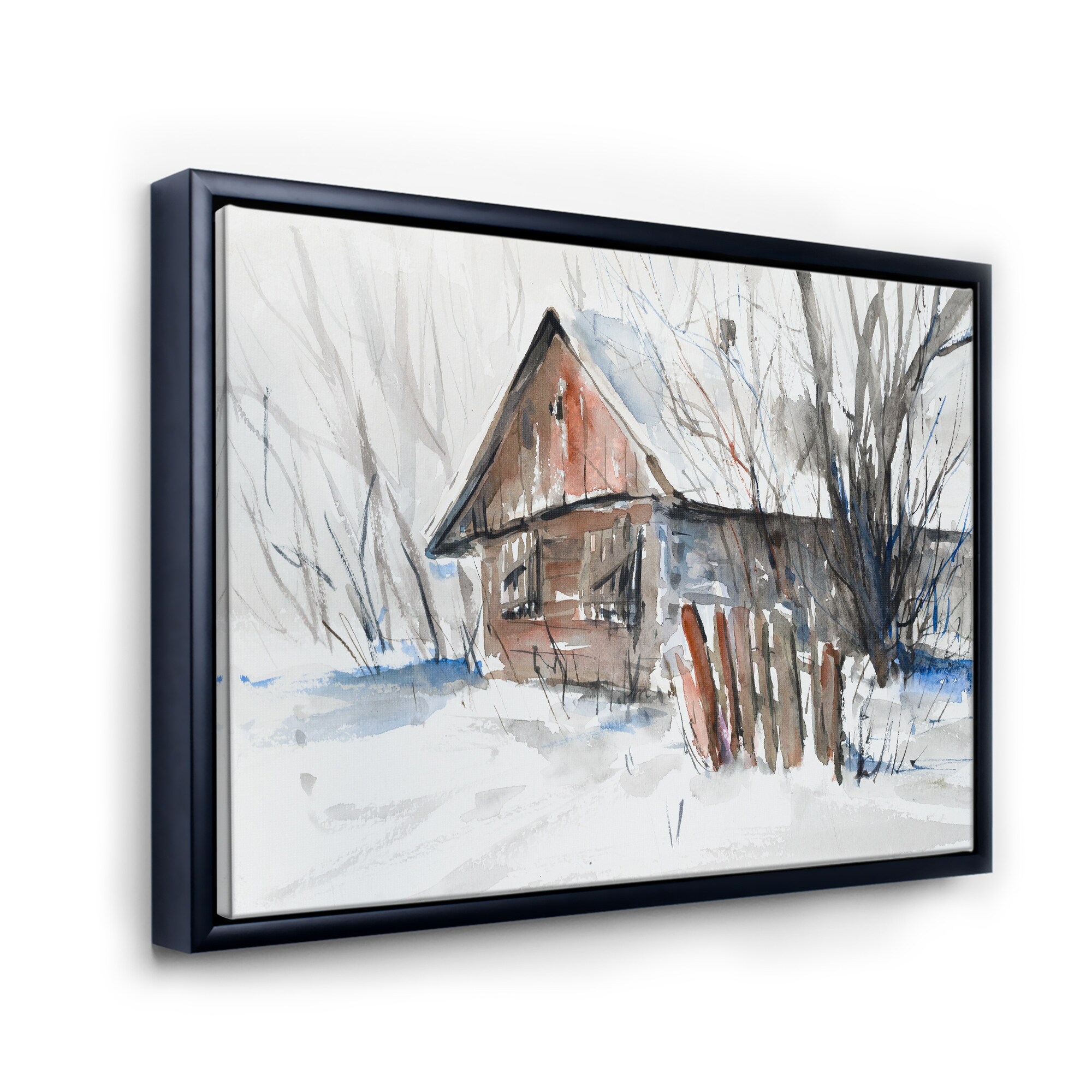 Designart "Old Abandoned Wooden House in Winter Picture" Traditional Framed Canvas Wall Art Print