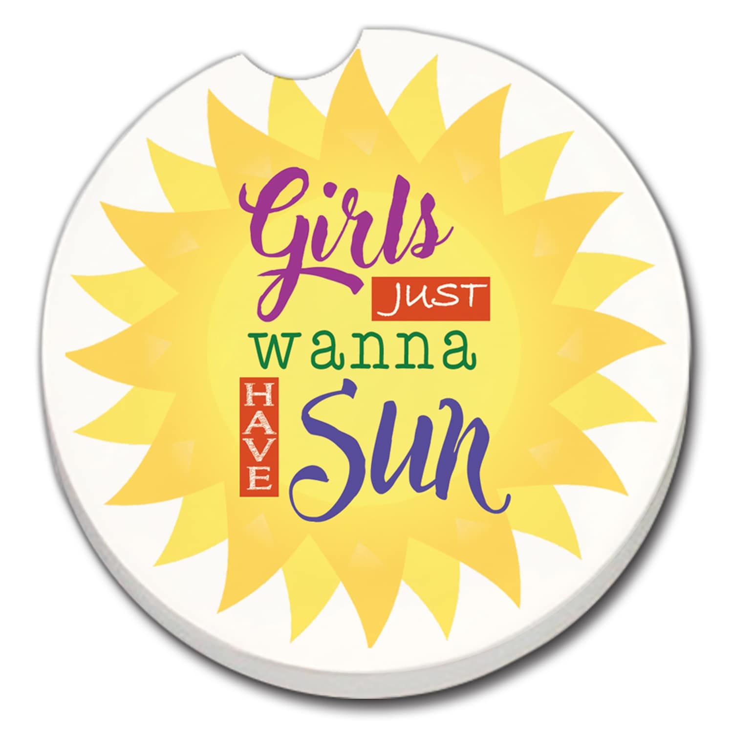 Counterart Absorbent Stoneware Car Coaster, Wanna Have Sun, Set of 2 - 2.5