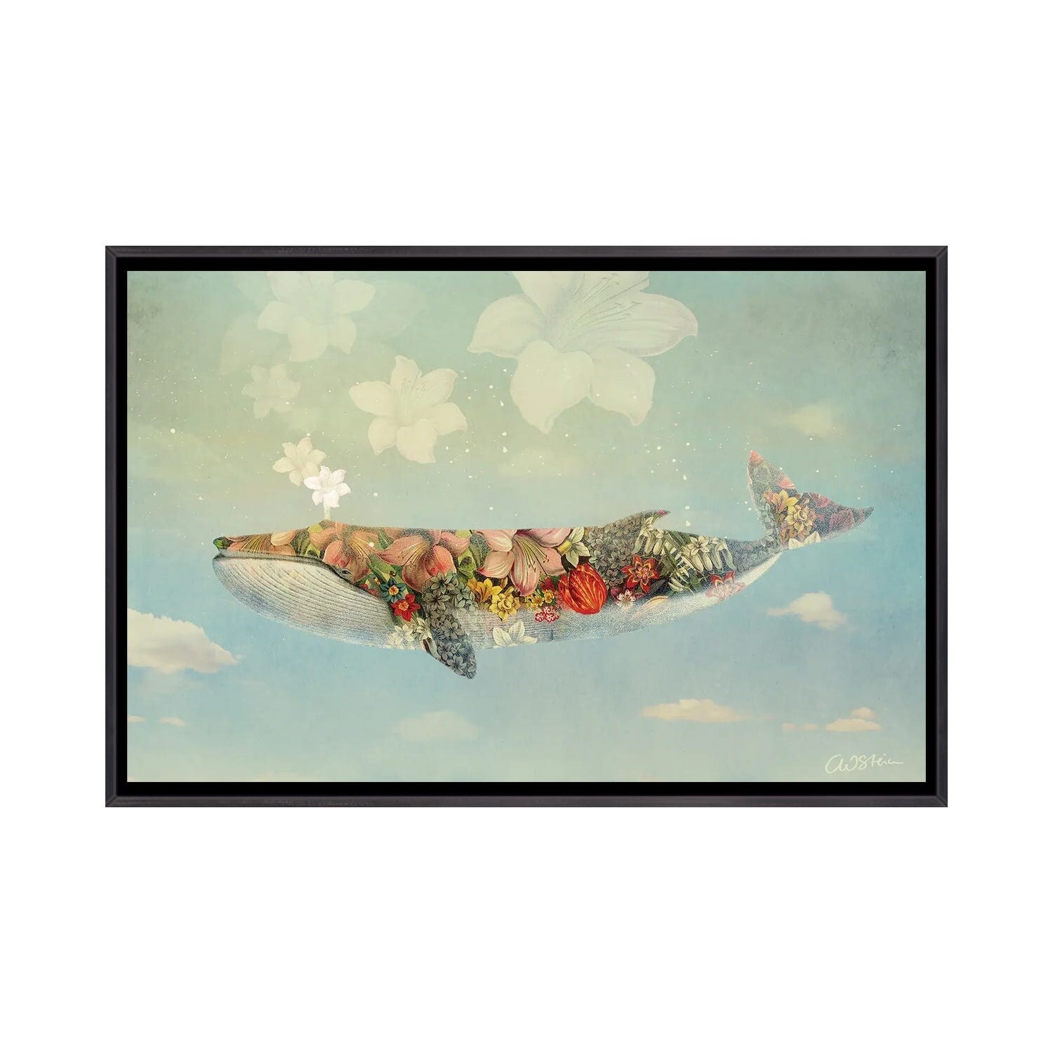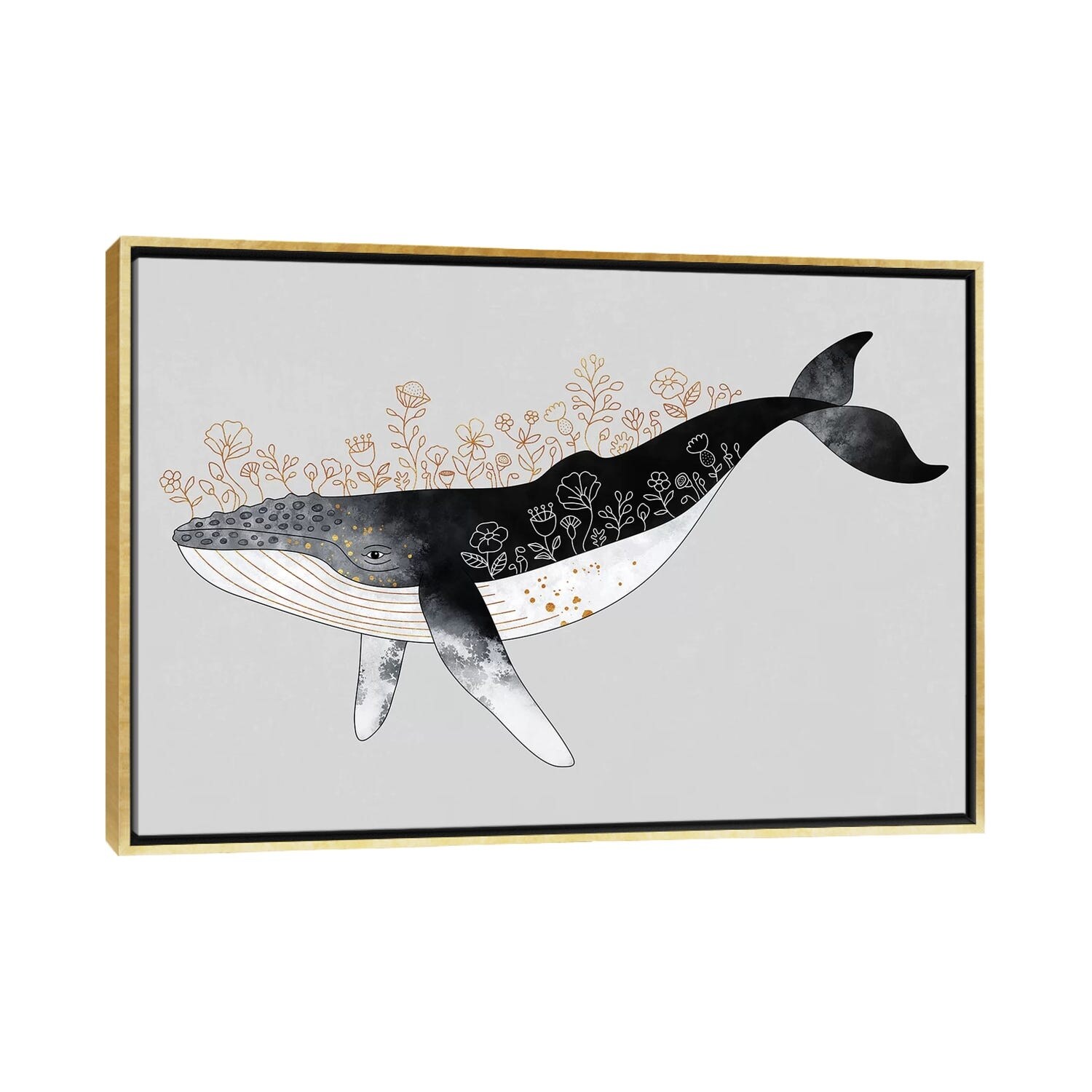 iCanvas "Floral Whale" by Elisabeth Fredriksson Framed Canvas Print