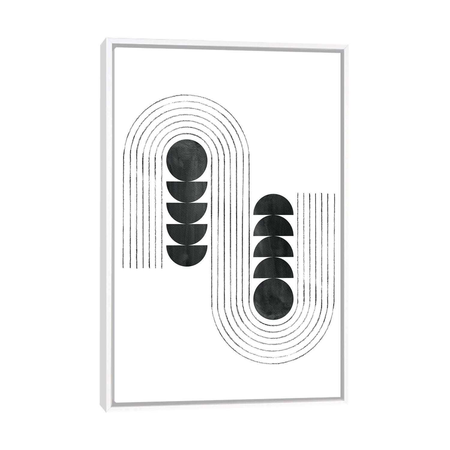 iCanvas "Black Shapes And Curved Lines" by Whales Way Framed Canvas Print