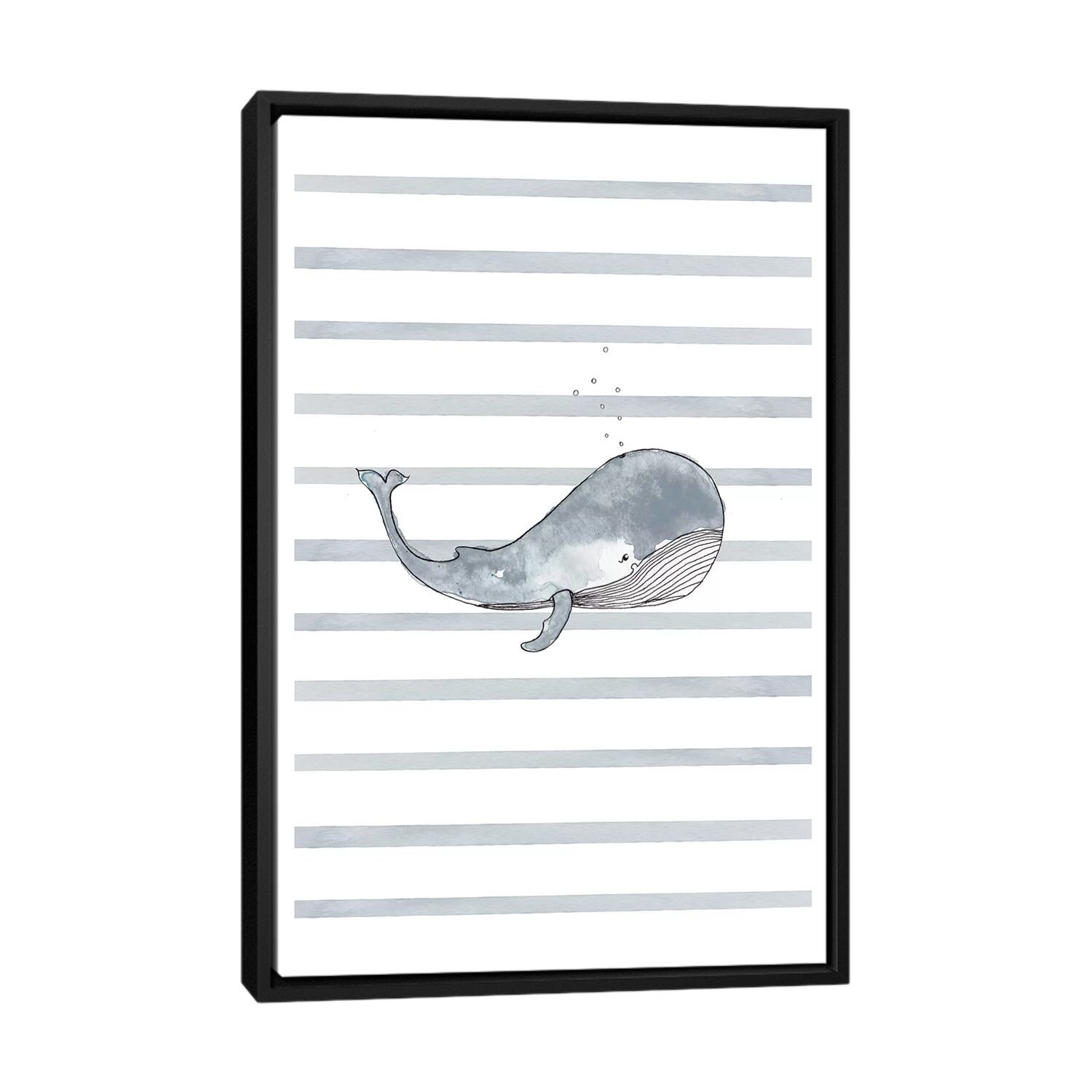 iCanvas "Whale Right Stripes I" by Leah Straatsma Framed Canvas Print
