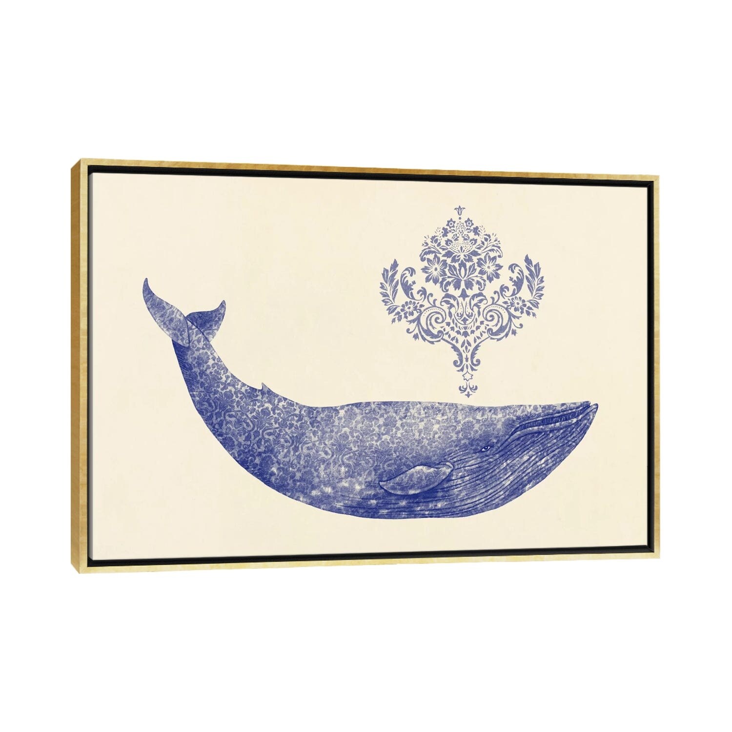 iCanvas "Damask Whale 1" by Terry Fan Framed