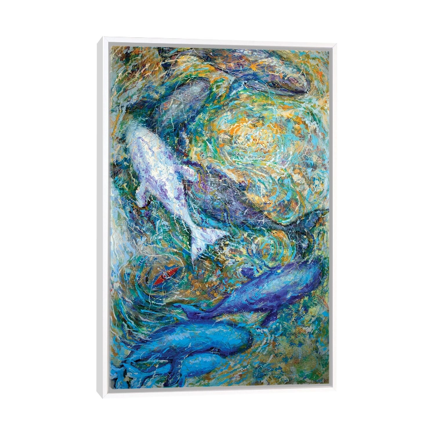 iCanvas "Whale and Fish I" by Eric Fan Framed