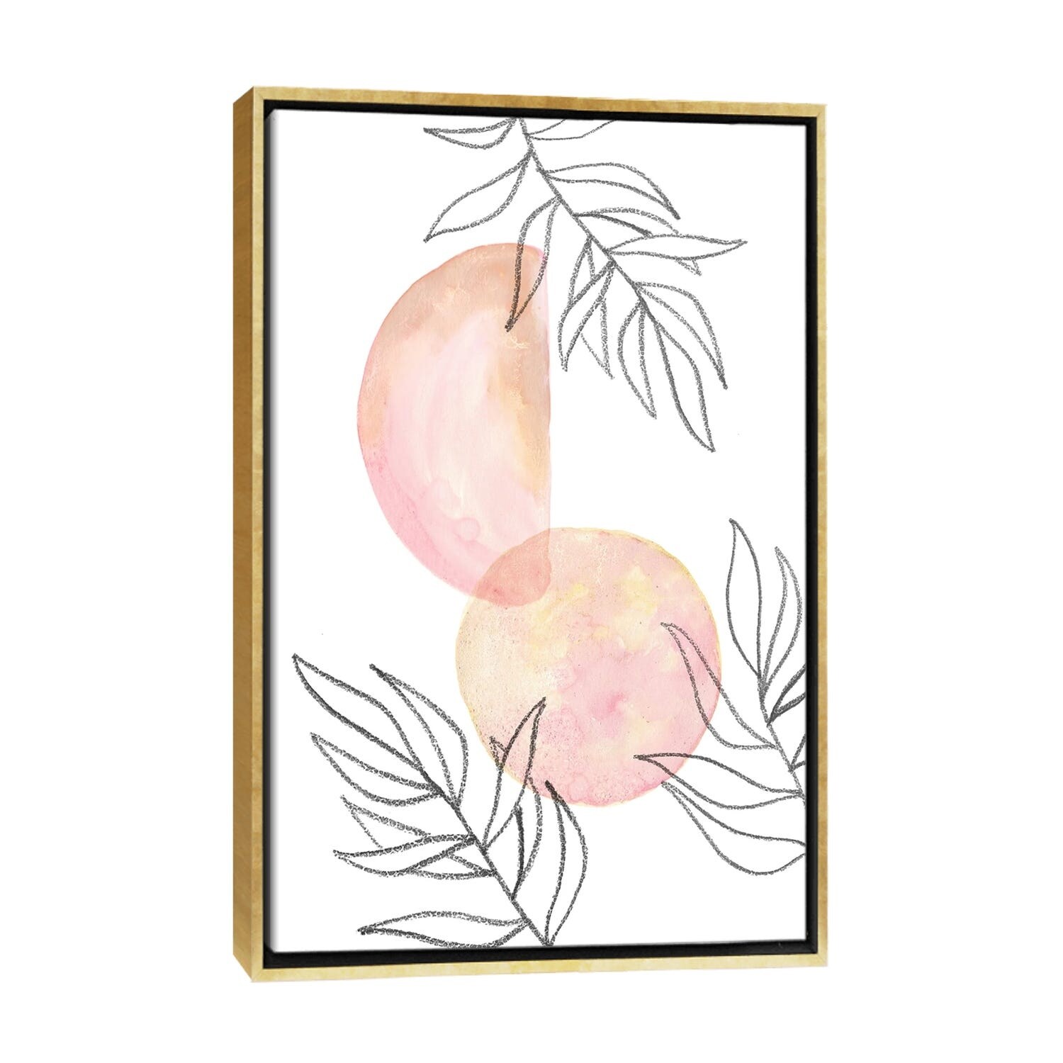 iCanvas "Blush pink shapes and leaves" by Whales Way Framed Canvas Print