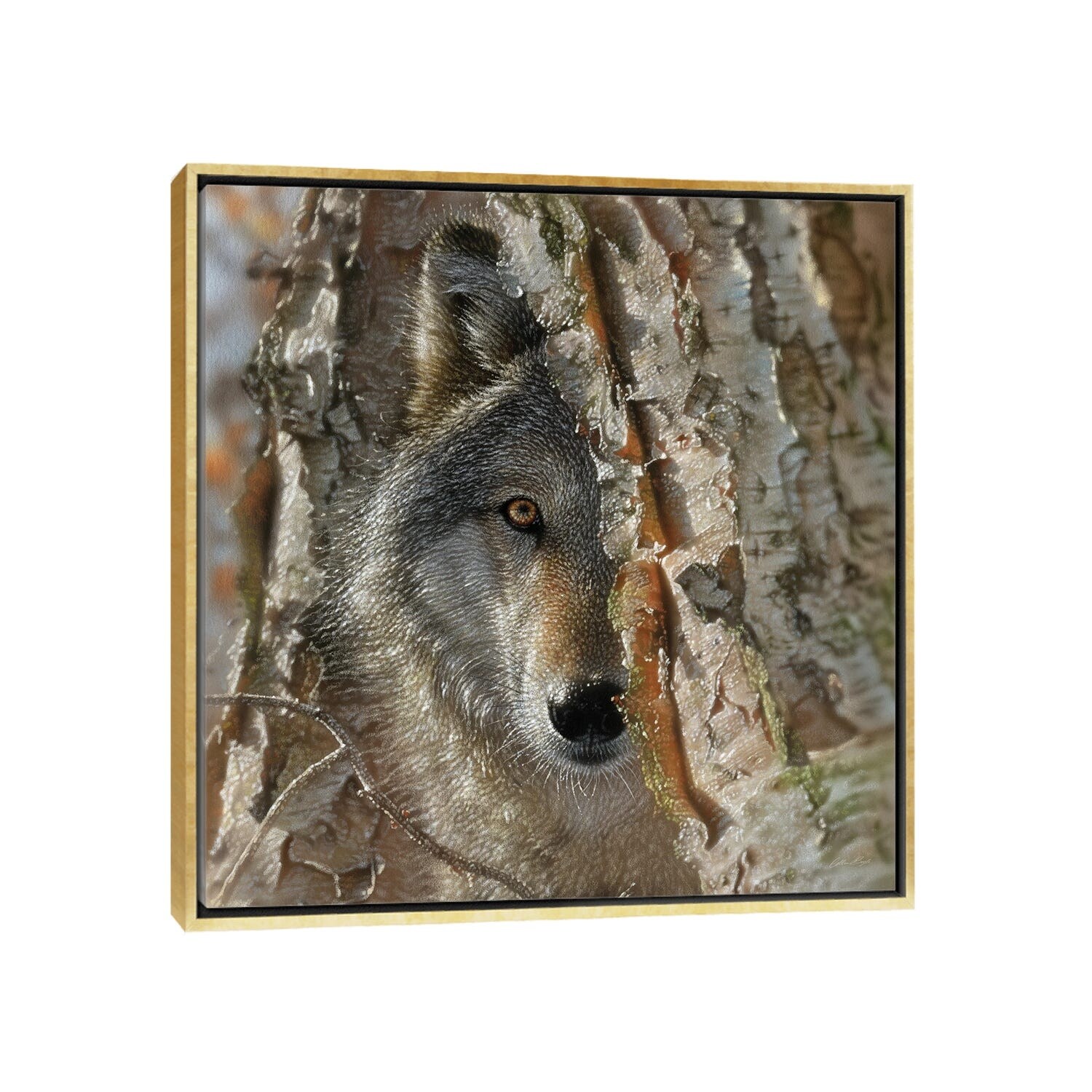 iCanvas "Close Encounter Wolf Square" by Collin Bogle Framed Canvas Print