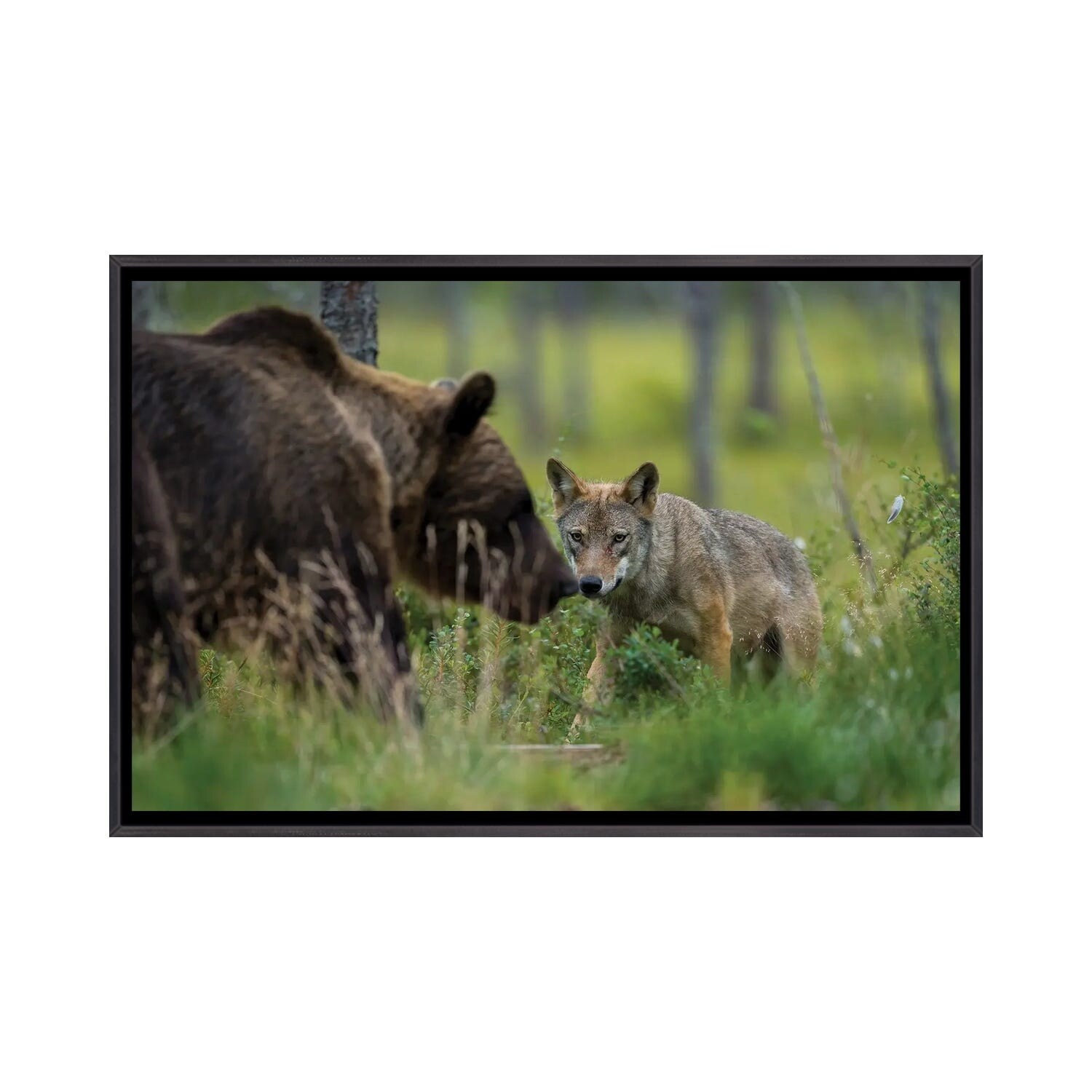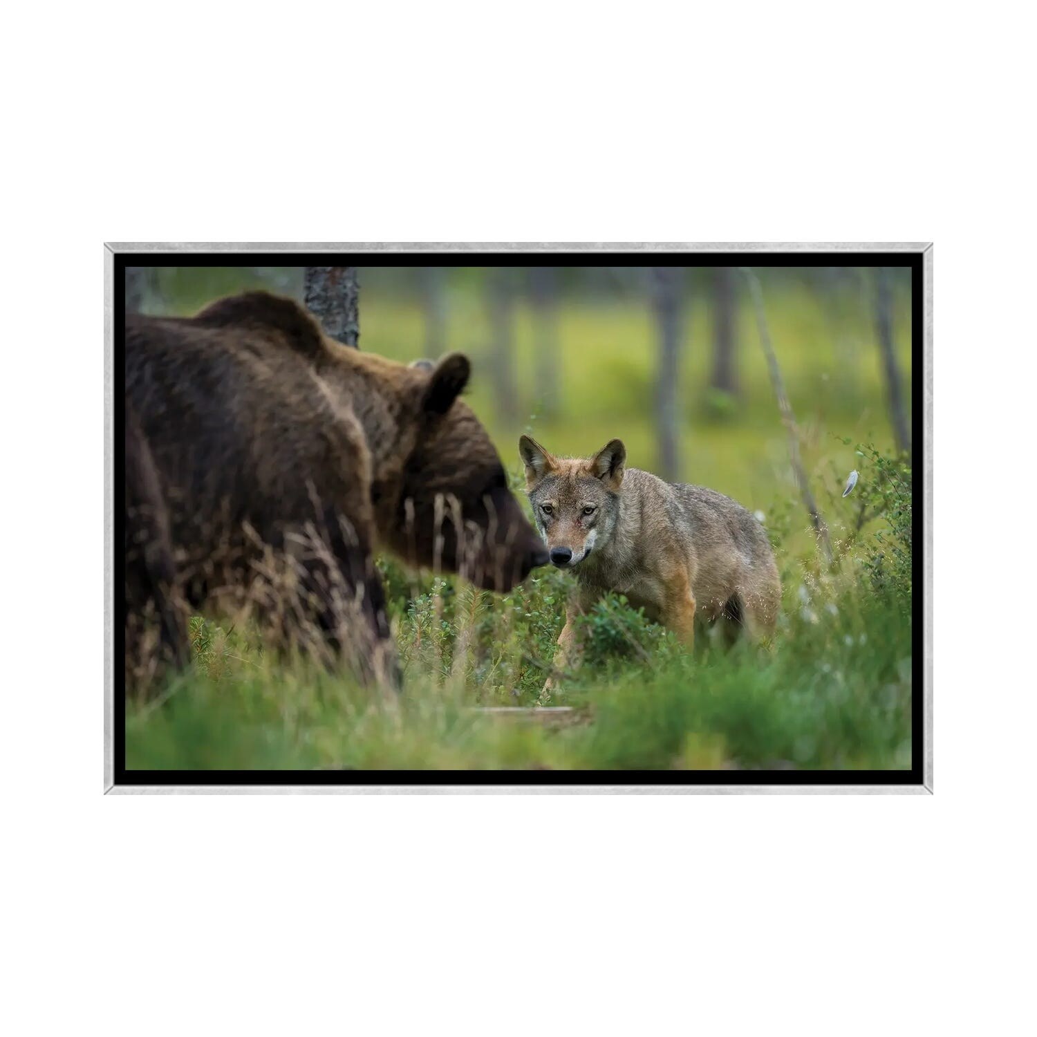 iCanvas "Wolf Meets Bear" by Martin Steenhaut Framed